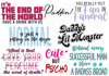 Harley Quinn SVG, PDF and PNG. harley quinn quotes, quotes clip art, margot robbie as harley quinn, face, suicide squad, Birds of Prey: Harley Quinn, daddy's lil monster, puddin, baseball bat, mallet, quotes like 'it's end of the world, have a drink with us', 'cute but psycho', 'live fast, die clown', 'behind every successful man there is a badass broad' ....and more!