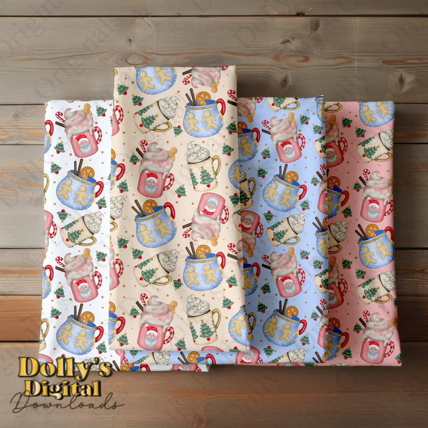 Includes Four Christmas Cups Seamless Patterns Clipart PNG (4 PNG’s)