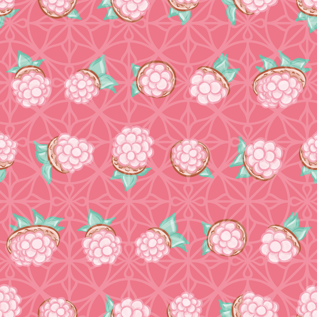 Wild fruits with leaves pattern illustration. Pink berries seamless vector background.