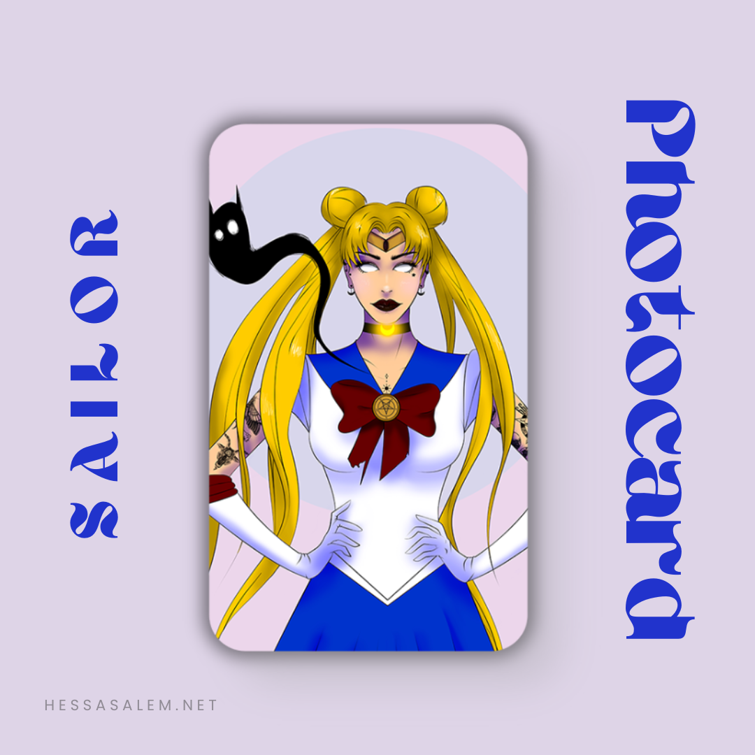 A photo-card print fan-artwork of Sailor Moon from Sailor Moon by © HessaSalem.net, 2019.