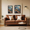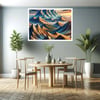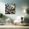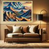Mountain ranges with a blend of earthy tones and vibrant colors of sky blues and sunset oranges. Mountain Landscape Prints, Printable multicolor Mountain Wall Art, Digital Download, Landscape Prints, Home Bedroom Décor