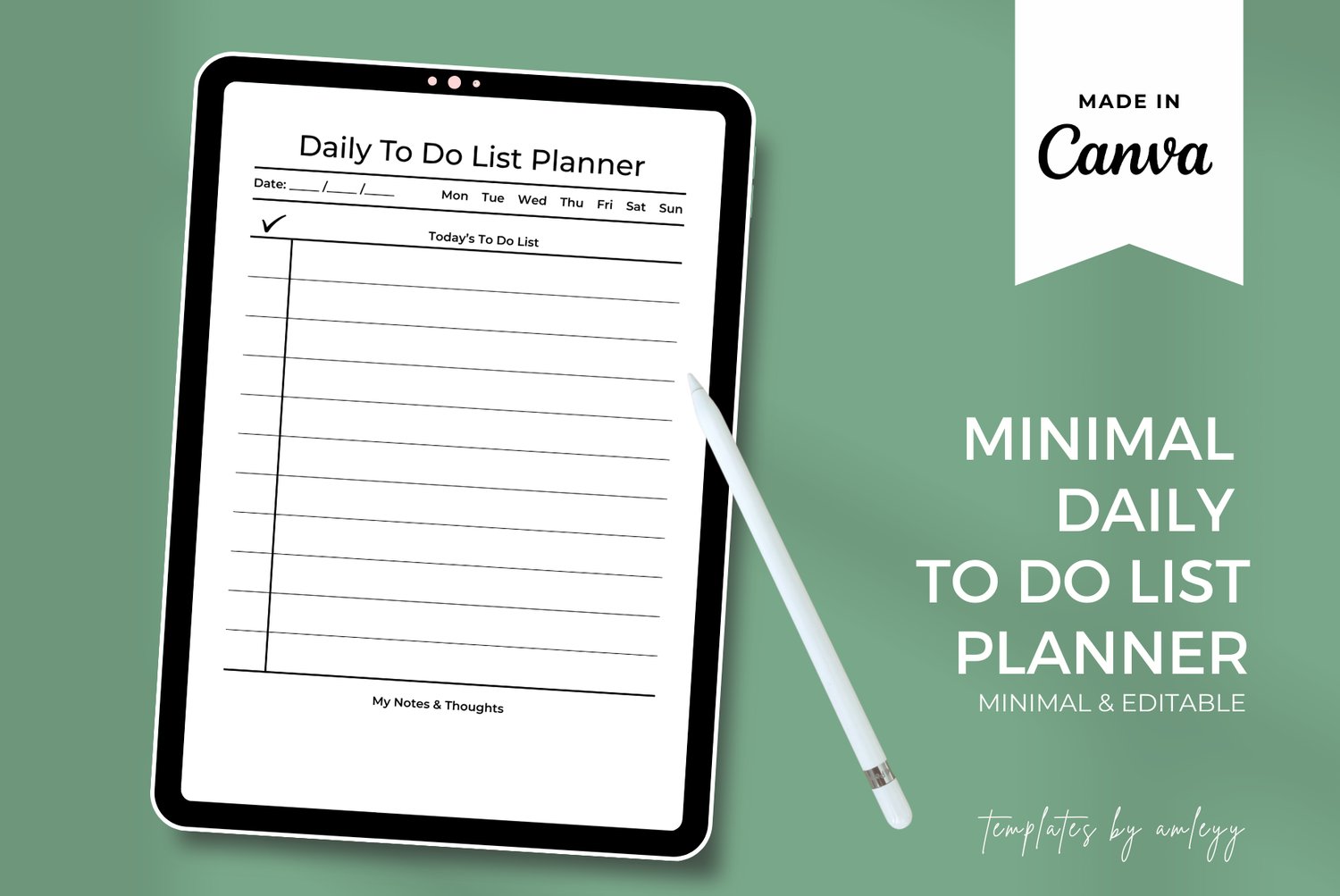 Minimal Daily To Do List Planner Canva Template | Editable Simple Daily Planner | Printable & Digital Organizer