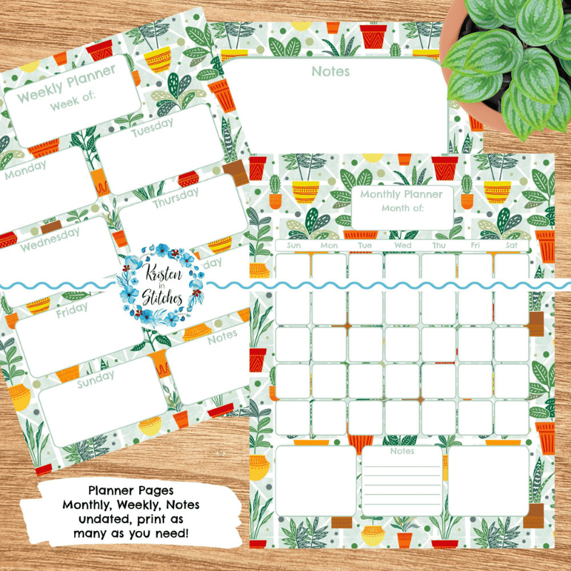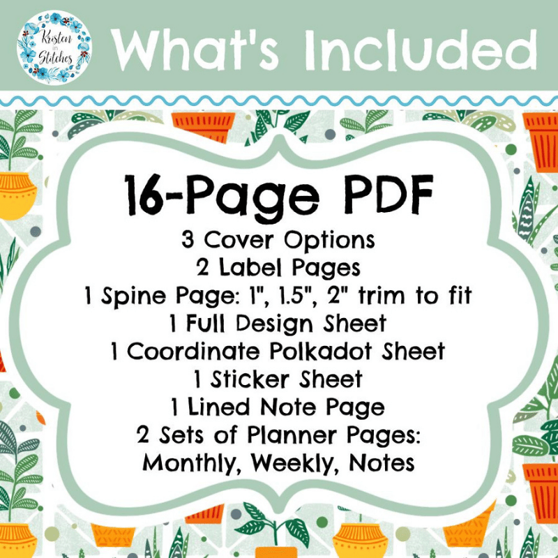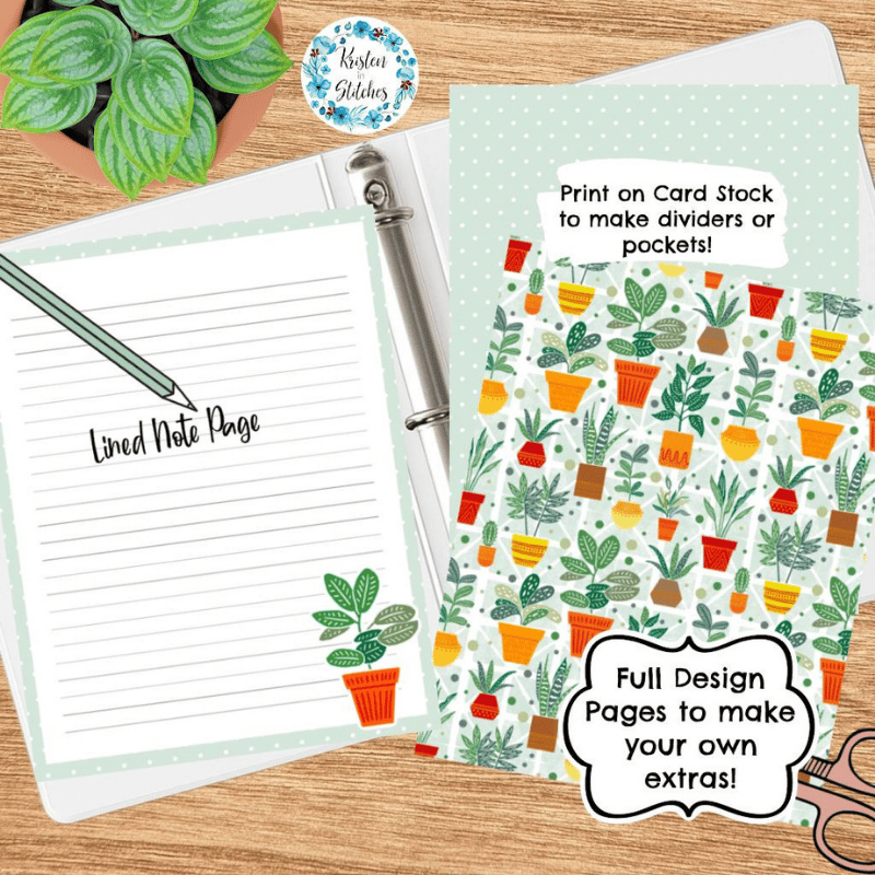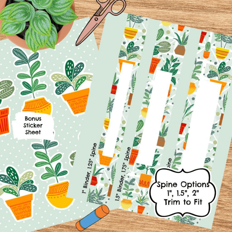 Printable Binder 16 Page Planner Set Covers Stickers 8.5x11 PDF, Pretty Plants