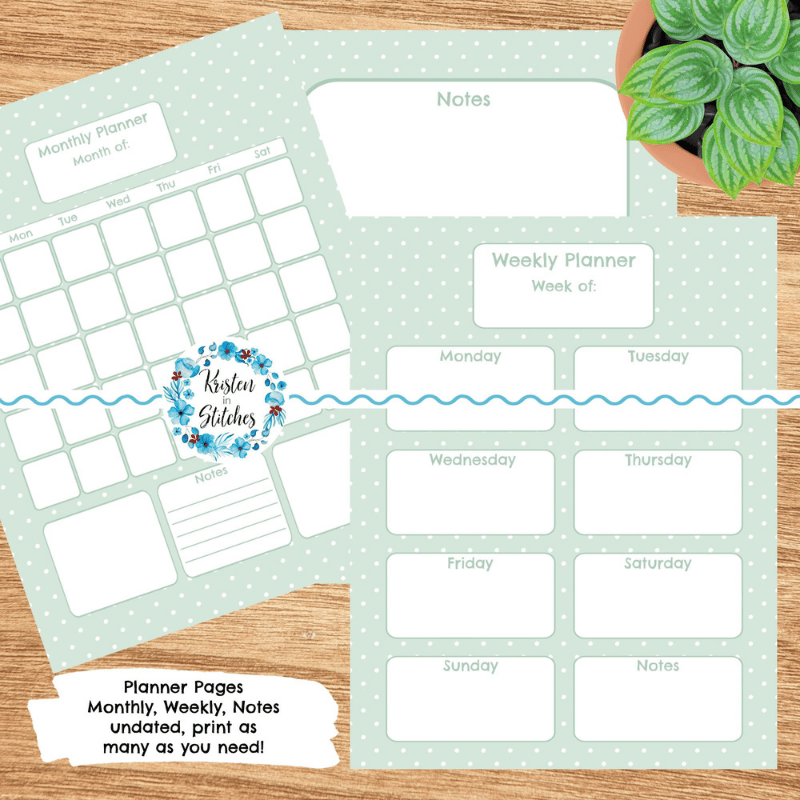 ✔ 3 Planner Pages – including weekly and daily and notes formats, in primary design and coordinate