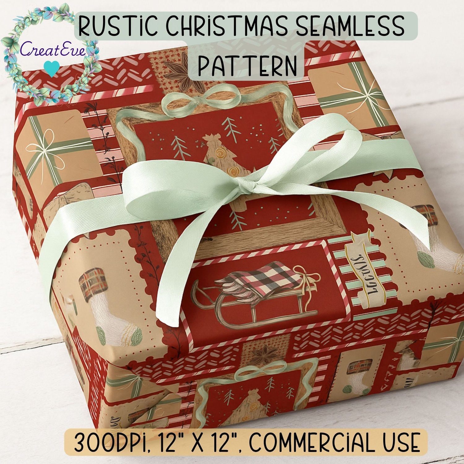 Collage Style Rustic Seamless Pattern PNG, 300dpi, 12" x 12", Commercial Use