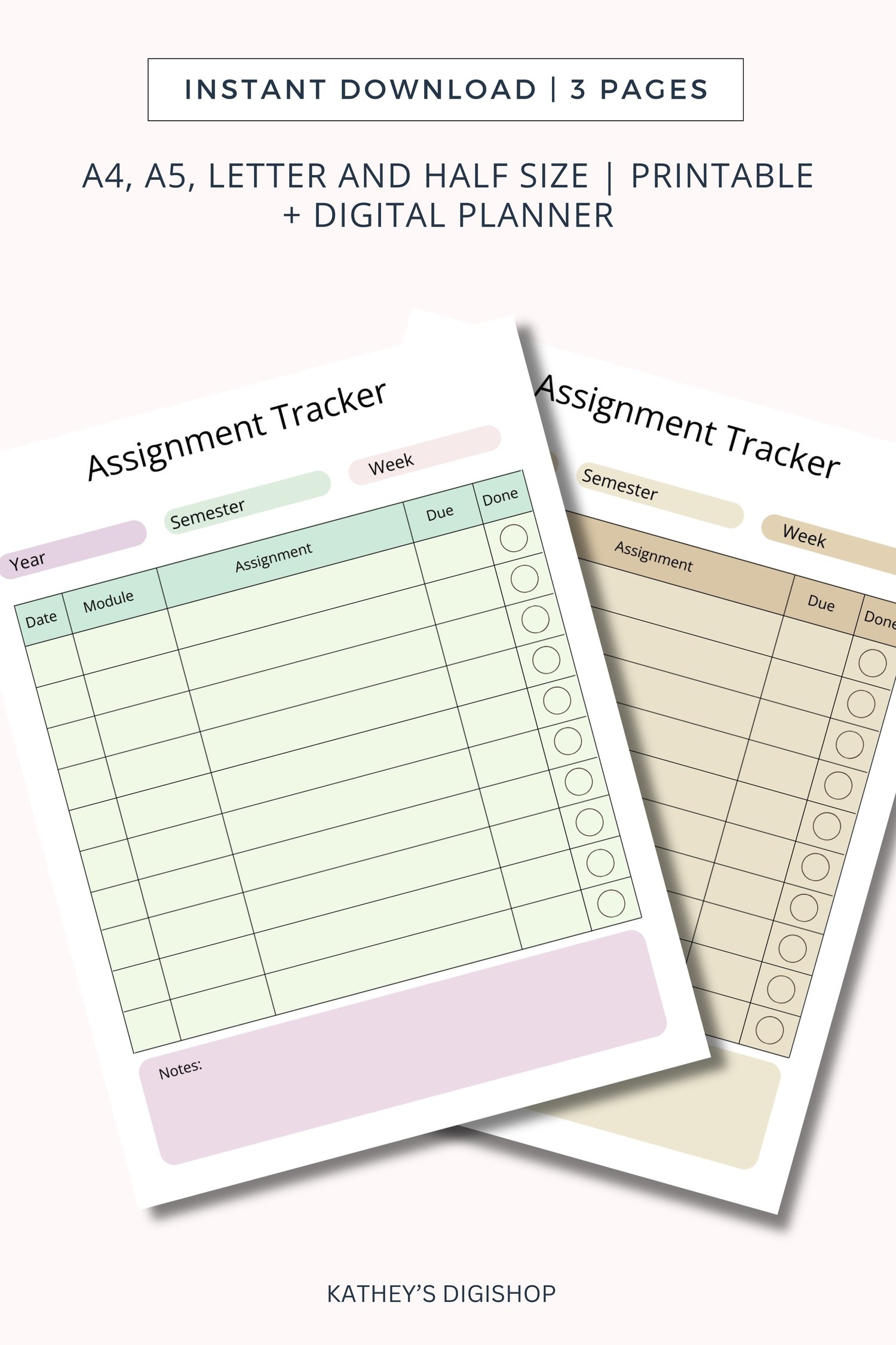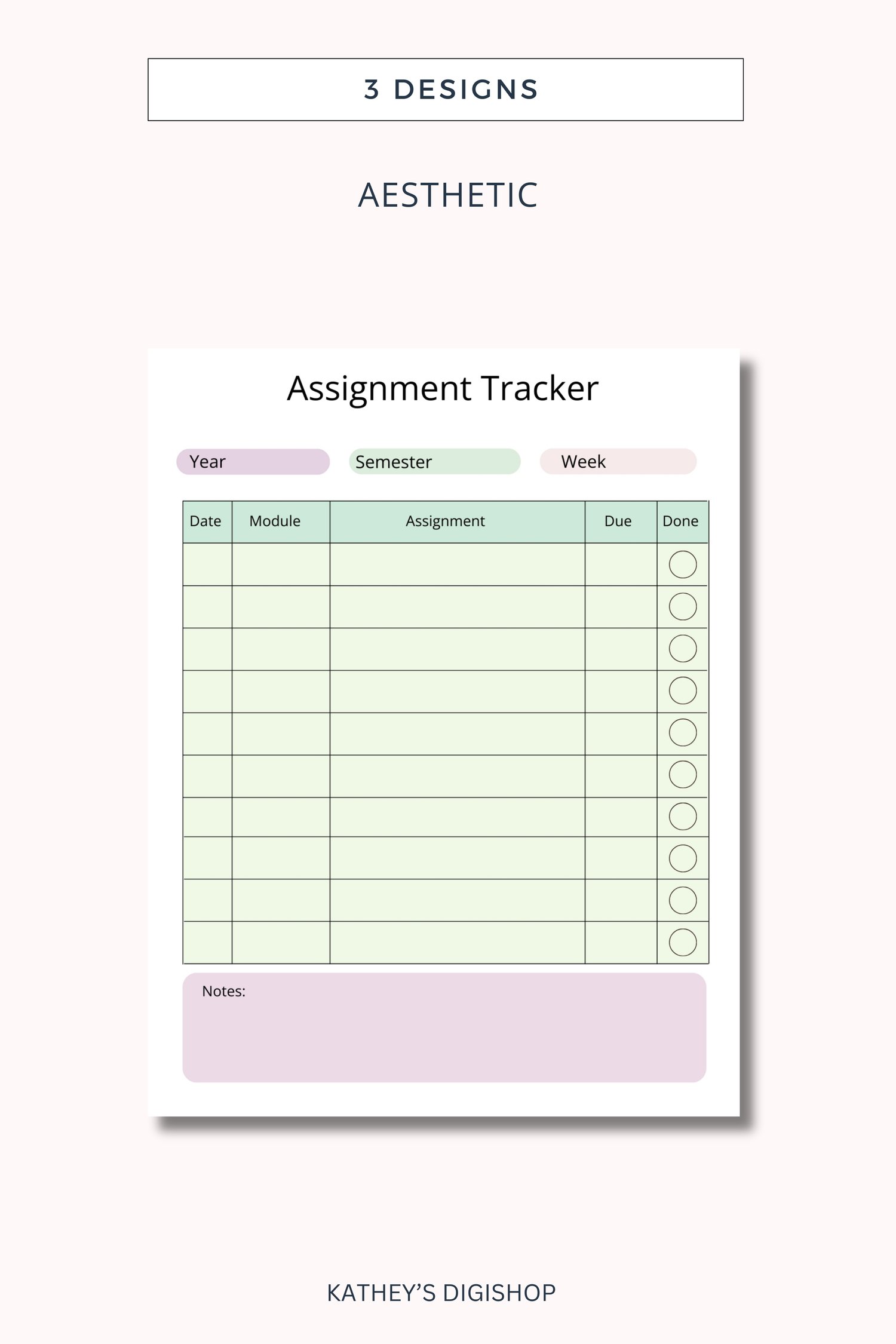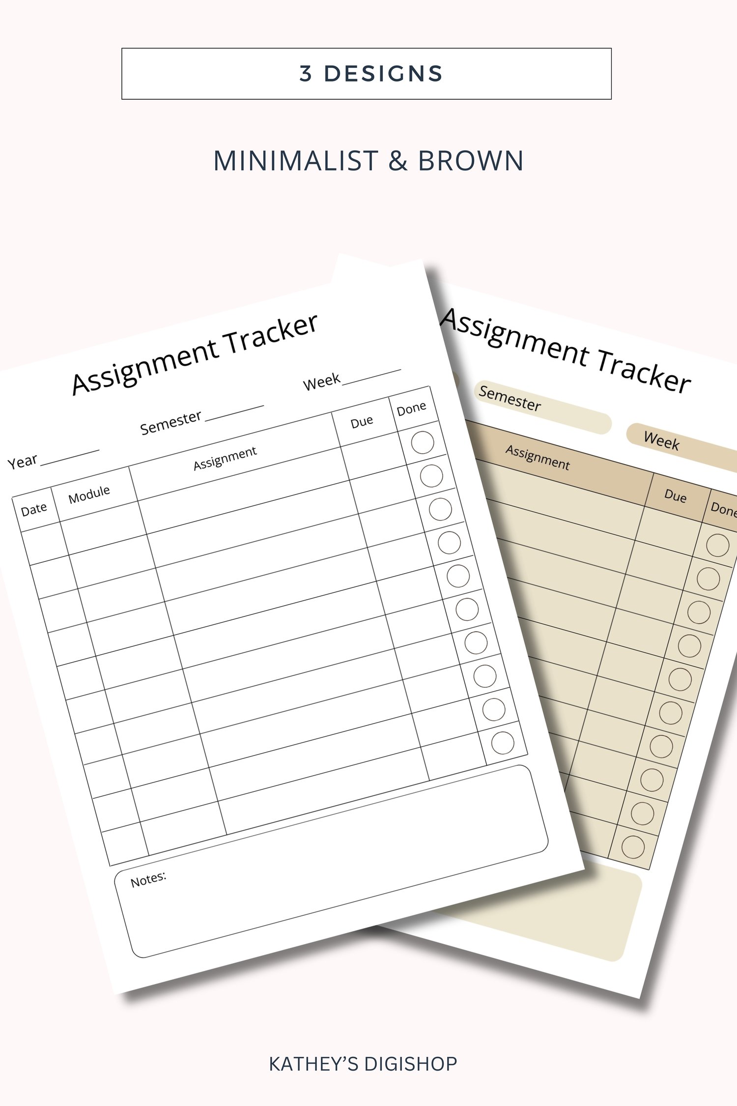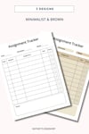 - The assignment tracker also comes in 3 designs