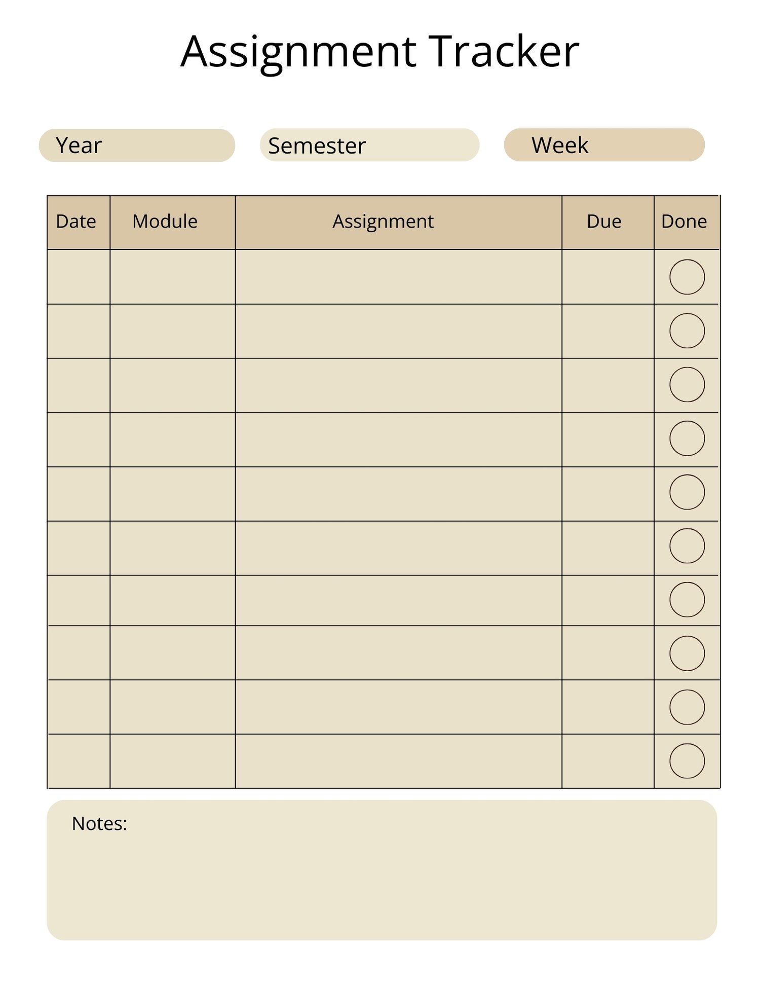2024 Assignment tracker, Assignment tracker template, Aesthetic assignment tracker, Printable assignment tracker