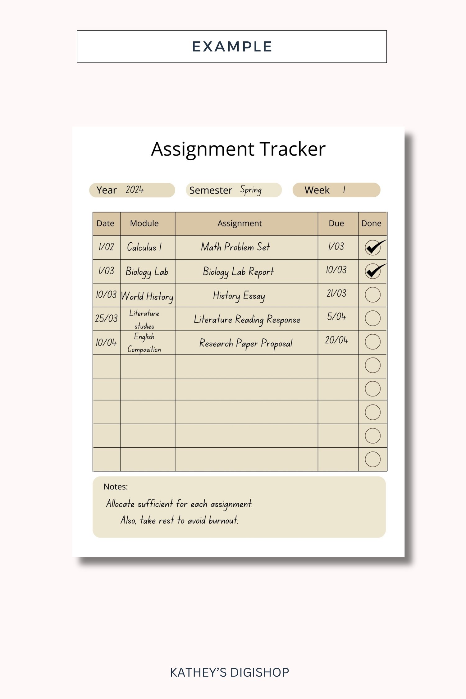 Stay organized in 2024 with our Printable Assignment Tracker Template. Effortlessly manage tasks with this aesthetic design. Never miss a deadline with our 2024 Assignment Tracker. Keep track of projects stylishly. Download now for a sleek and efficient way to stay on top of your assignments.