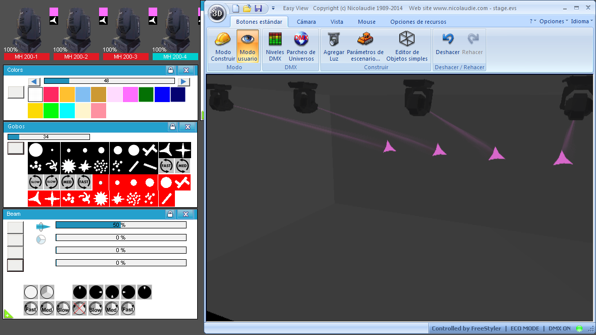Esta Librería SSL2 está optimizada para trabajar con Magic 3d Easy View. Es decir para ver una representación 3D de las secuencias que estemos realizando con Freestyler, QLC+ o cualquier otro soft que se conecte con Magic 3d.
