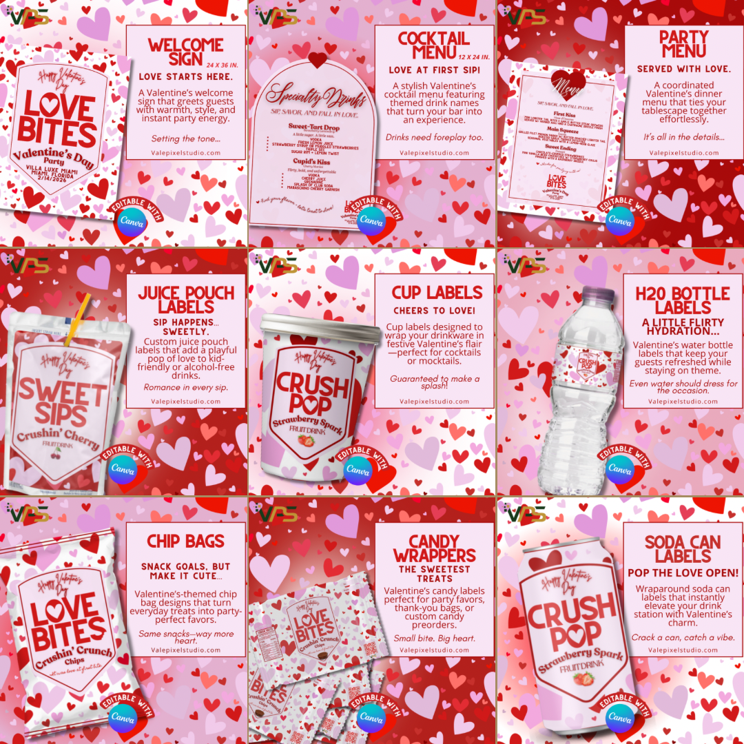 Turn your Valentine’s Day celebration into a fully styled experience with our Valentine’s Day Dinner Menu is designed to coordinate seamlessly with the full set, adding a polished, love-filled detail that elevates your party setup with minimal effort.