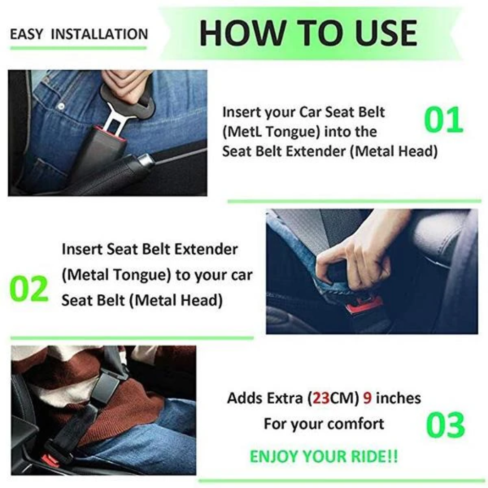 Universal Seat belt extenders for cars are designed to provide safety when the original vehicle seat belt is not long enough. It's ideal for use for booster seats, kids, pregnant women, obese people, etc.