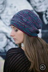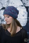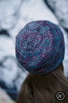 Shown in Malabrigo Arroyo shades ‘Reflecting Pool’ & ‘Jupiter’ [335yd/306m per 100g; 100% Superwash Merino]Shown in size 22in/56cm on model with 21.75in/55.25cm circumference head