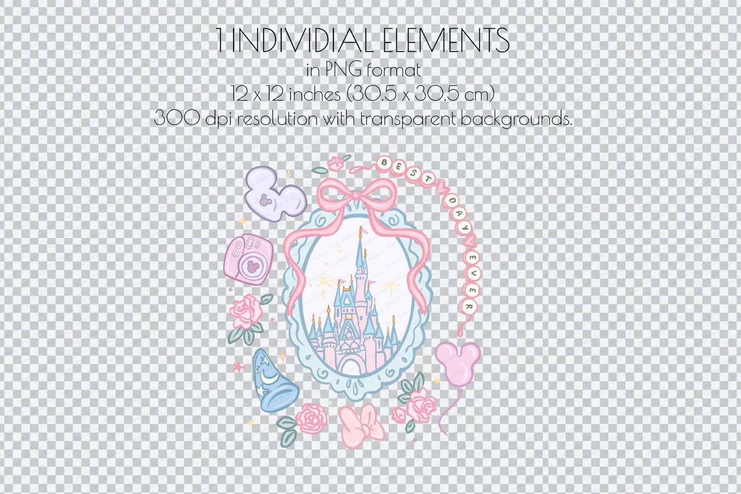 This Disney Floral Magic Kindom PNG images will be perfectly sutable for projects such as printing projects, sublimation,party invites, scrapbooking, greeting cards !!!