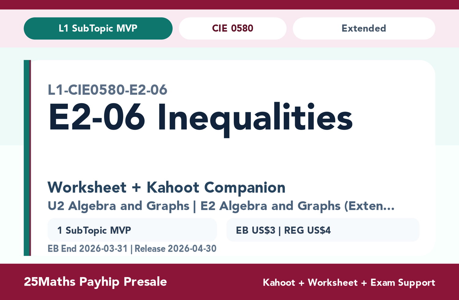 Extended Practice: Deeper variations of key problems strictly aligned with the CIE 0580 Core syllabus.