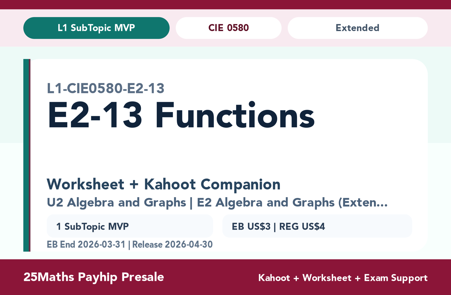 Master Graphs of Functions for your CIE 0580 Core Exam with our Interactive Practice Suite! Whether you're a student securing your foundational marks or a teacher looking for engaging classroom resources, this worksheet and Kahoot combo is built directly from the official CIE syllabus.