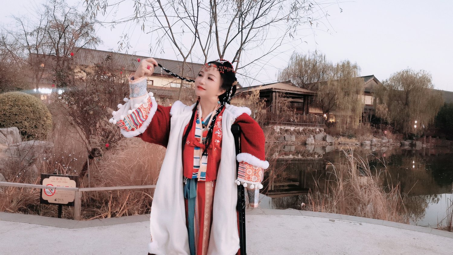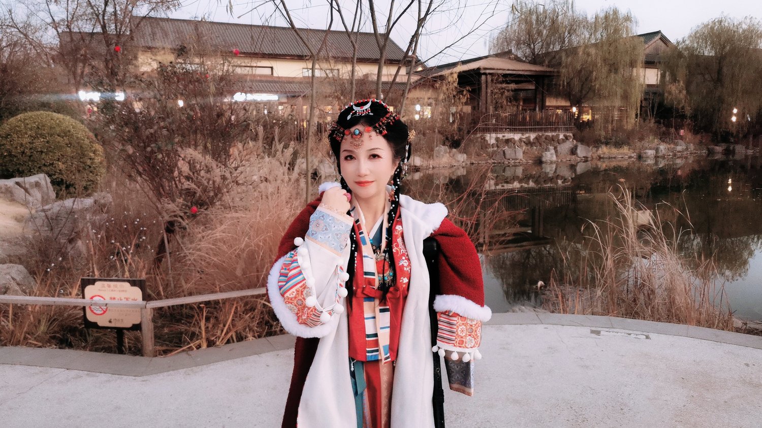 Recently I went to a hot spring resort, where I could soak in hot springs, wear Tang Dynasty makeup, wear ancient clothes and shoot videos in the antique building area.