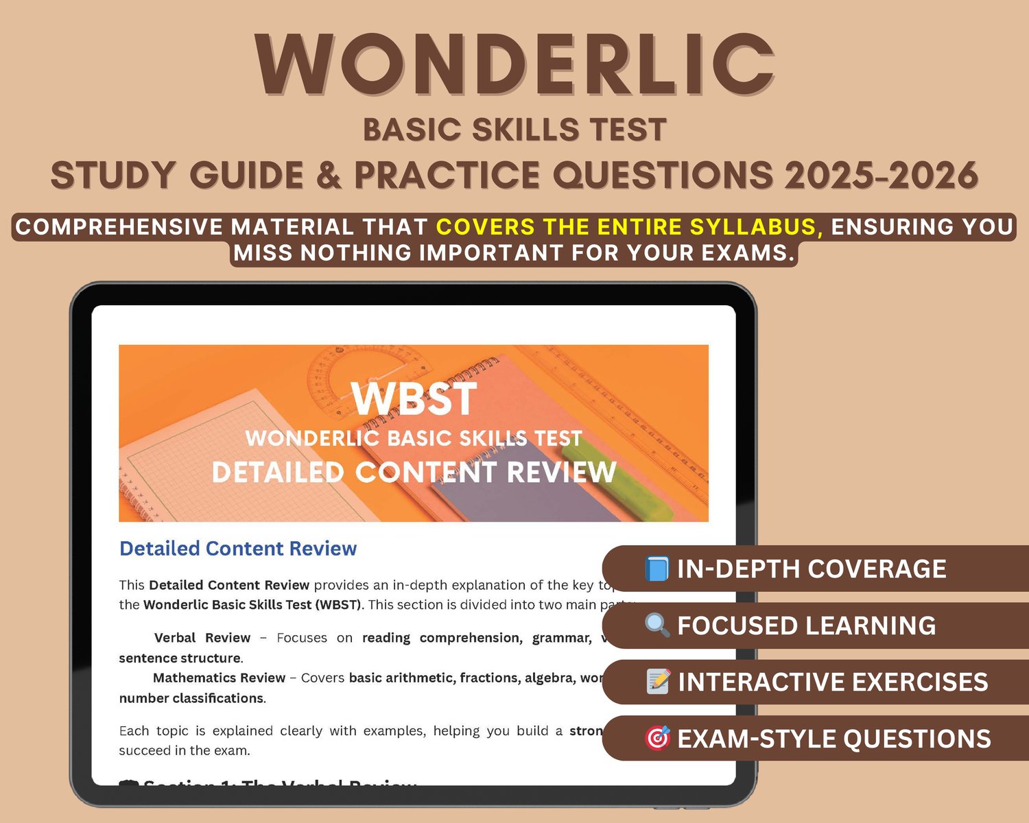 📘 Wonderlic Basic Skills Test Study Guide 2025-2026 | WBST Exam Prep Book | Verbal & Math Practice Tests | Instant Download