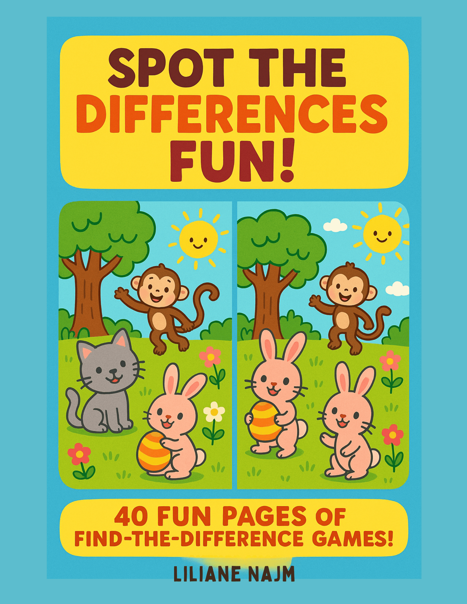 Get ready for giggles and discovery with Spot the Differences Fun! β a delightful 40-page activity book designed for curious kids ages 4 to 8. Each page presents two colorful, whimsical scenes filled with charming animals and playful surprises. Can your child spot all the differences?