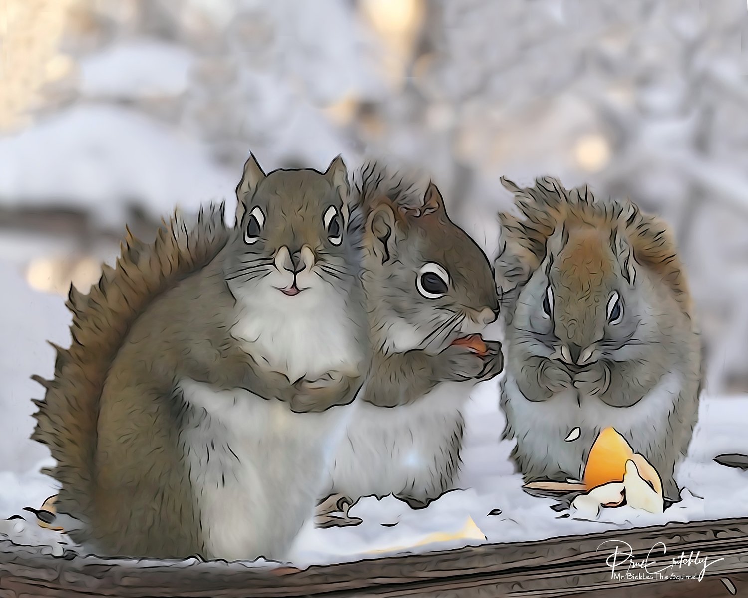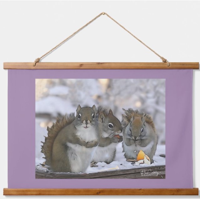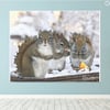 This is a collage generated from some photographs I took using an illustration mode on the camera and some photoshop! Here are a group of our squirrels in the middle of winter last year! Ideal for a child's room!