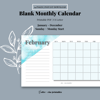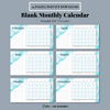 12-Month Undated Monthly Printable Calendar | Blue Watercolor