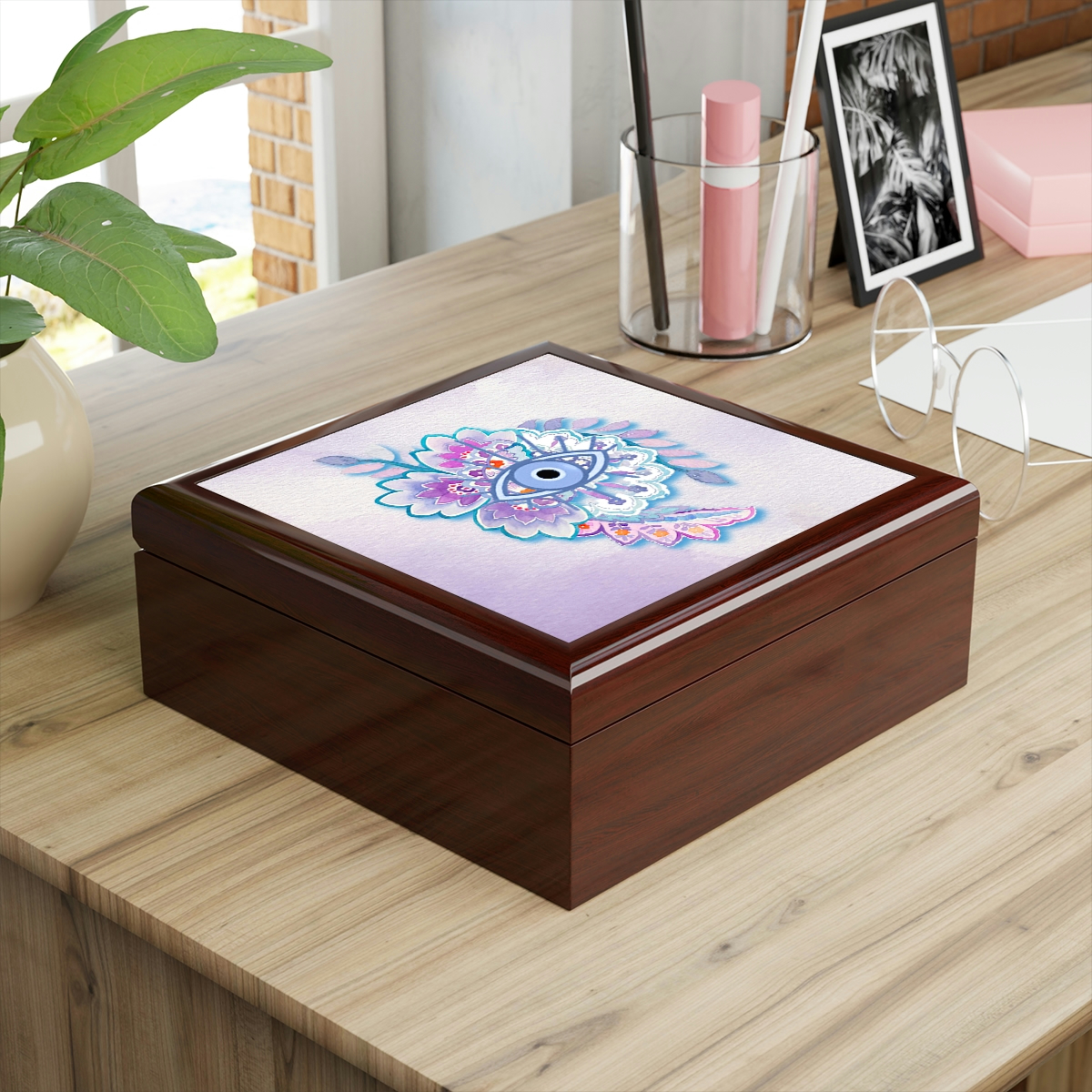 Lavender Lace Paisley Evil Eye Jewelry Box