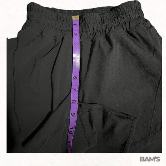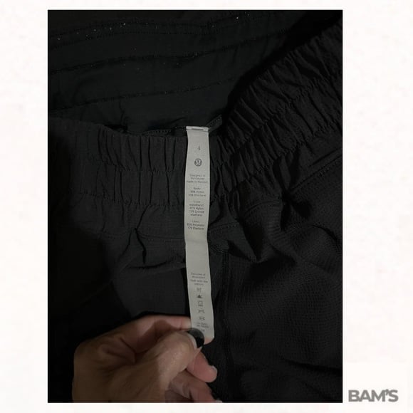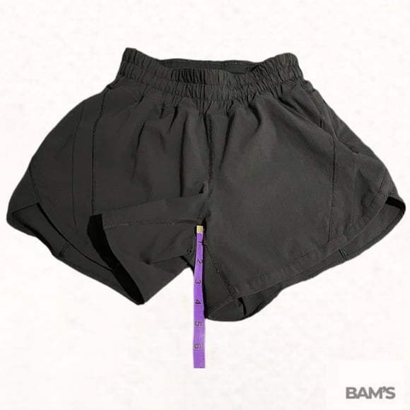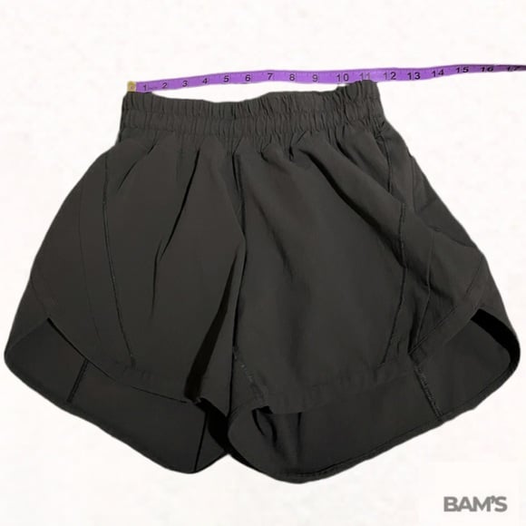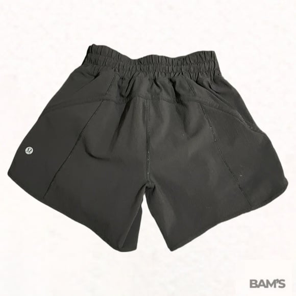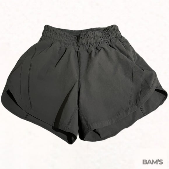 Authentic Lululemon women’s athletic shorts in classic black. Lightweight, breathable performance fabric with a comfortable elastic waistband and built-in liner. Features a discreet zipper pocket—perfect for running, training, gym sessions, or everyday athleisure wear.