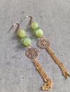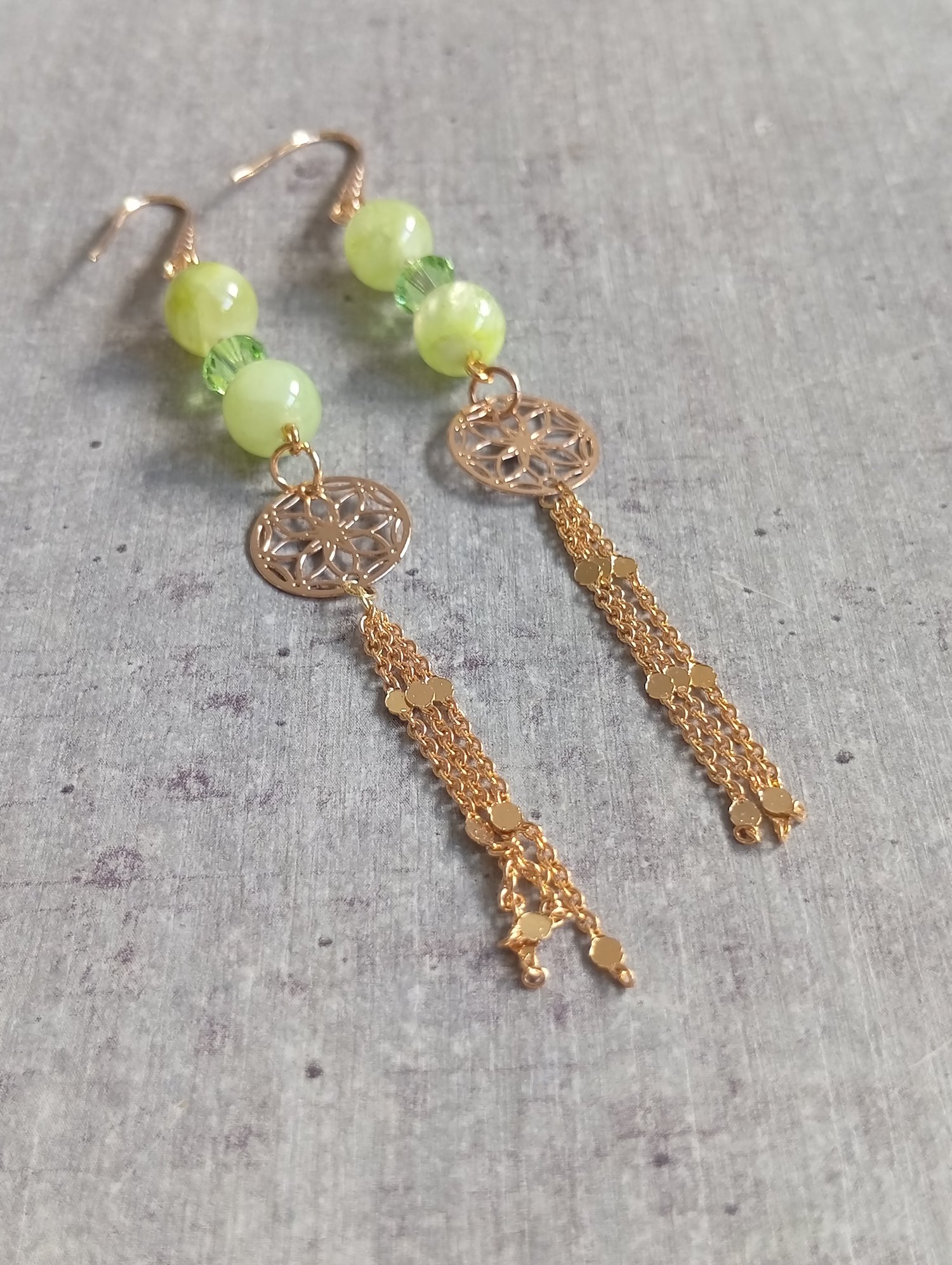 Boucles pendantes en calcite verte (8 mm), au style à la fois simple et vibrant.