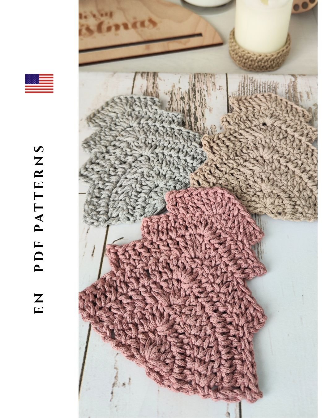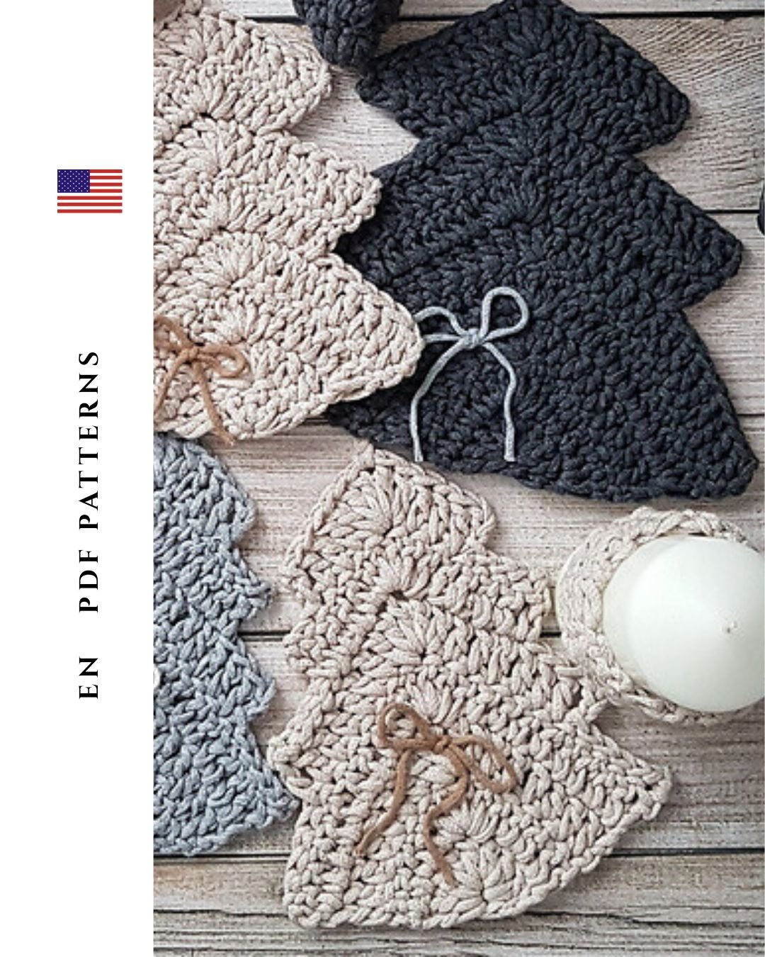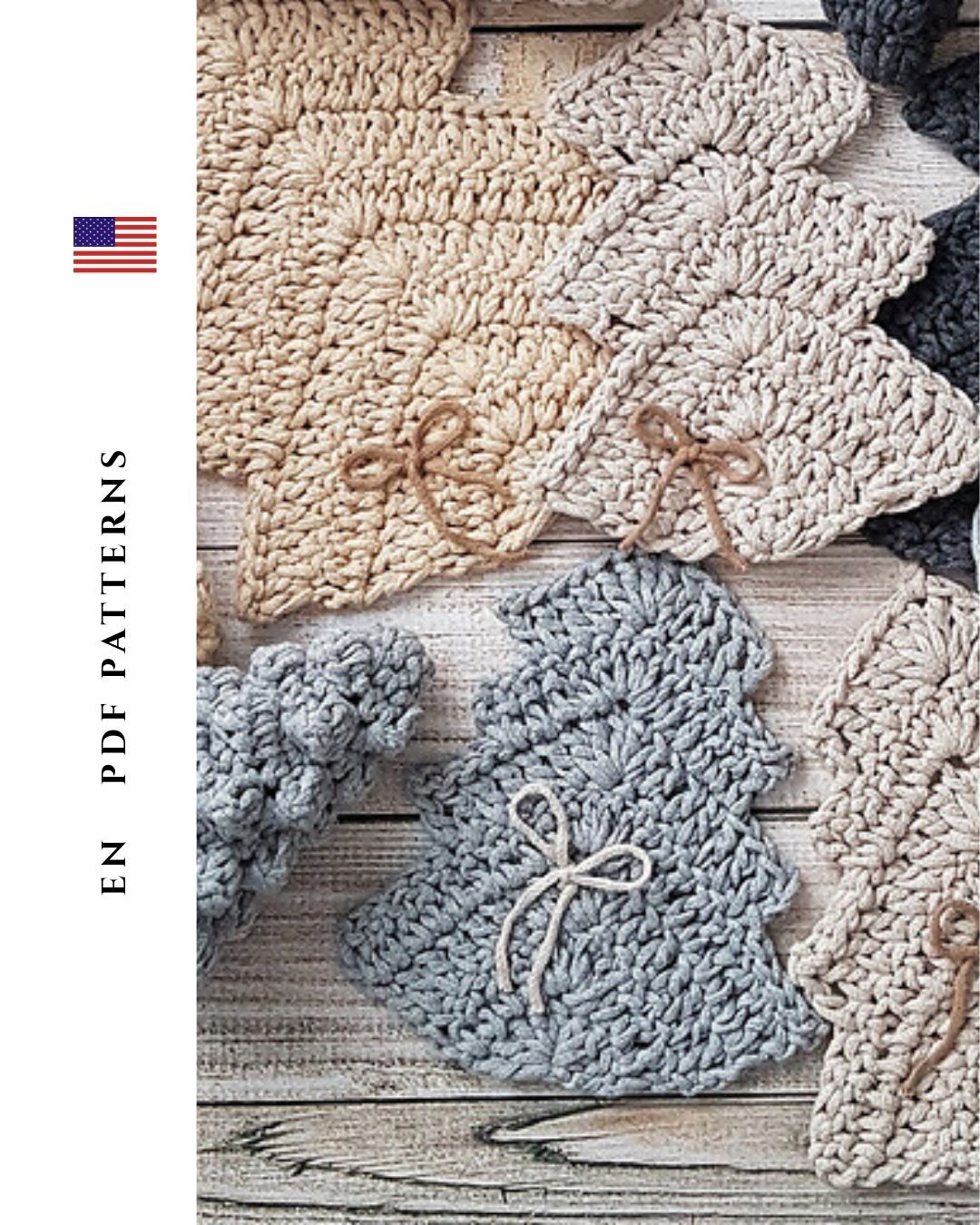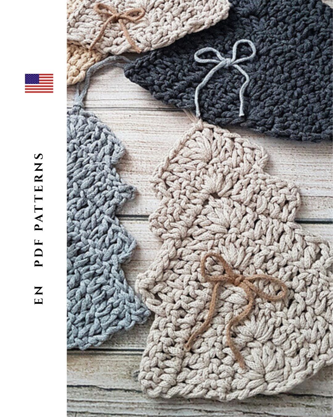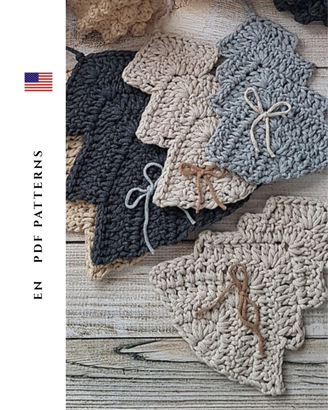 Christmas Flat Tree Ornaments - modern, easy crochet decor pattern with step-by-step video tutorial and printable PDF. Beginner-friendly design perfect for festive handmade gifts, markets, and minimalist holiday decorations.