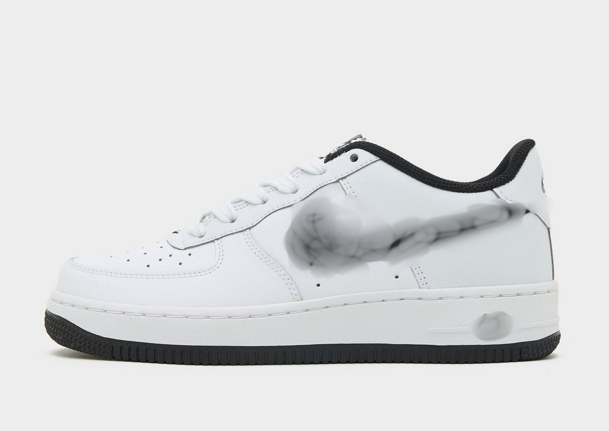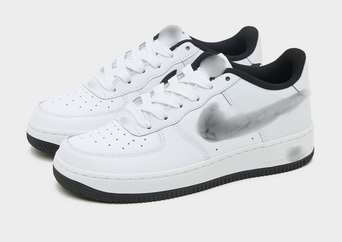 Sleek low-top sneakers in crisp white with a bold black logo and a matching black outsole. Featuring a classic court silhouette, perforated toe box, and two-tone contrast for a standout streetwear edge. Perfect for monochrome fits with a statement finish.