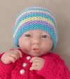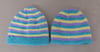 This pattern includes two styles of 8ply Beanies. One is worked in stocking stitch with two row stripes and has a garter stitch brim; the other is worked entirely in garter stitch, in four row stripes. The patterns includes three prem sizes and a newborn size.