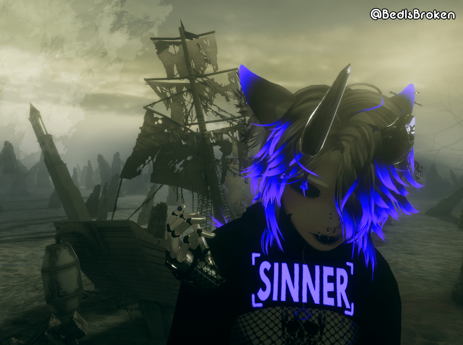 Piercings - A mix of the default from the head, and made by me, DO NOT REUSE!