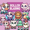 Eating a pizza, Eating ice cream, Drinking coffee, Rollerblading, Skateboarding, and listening to music.