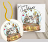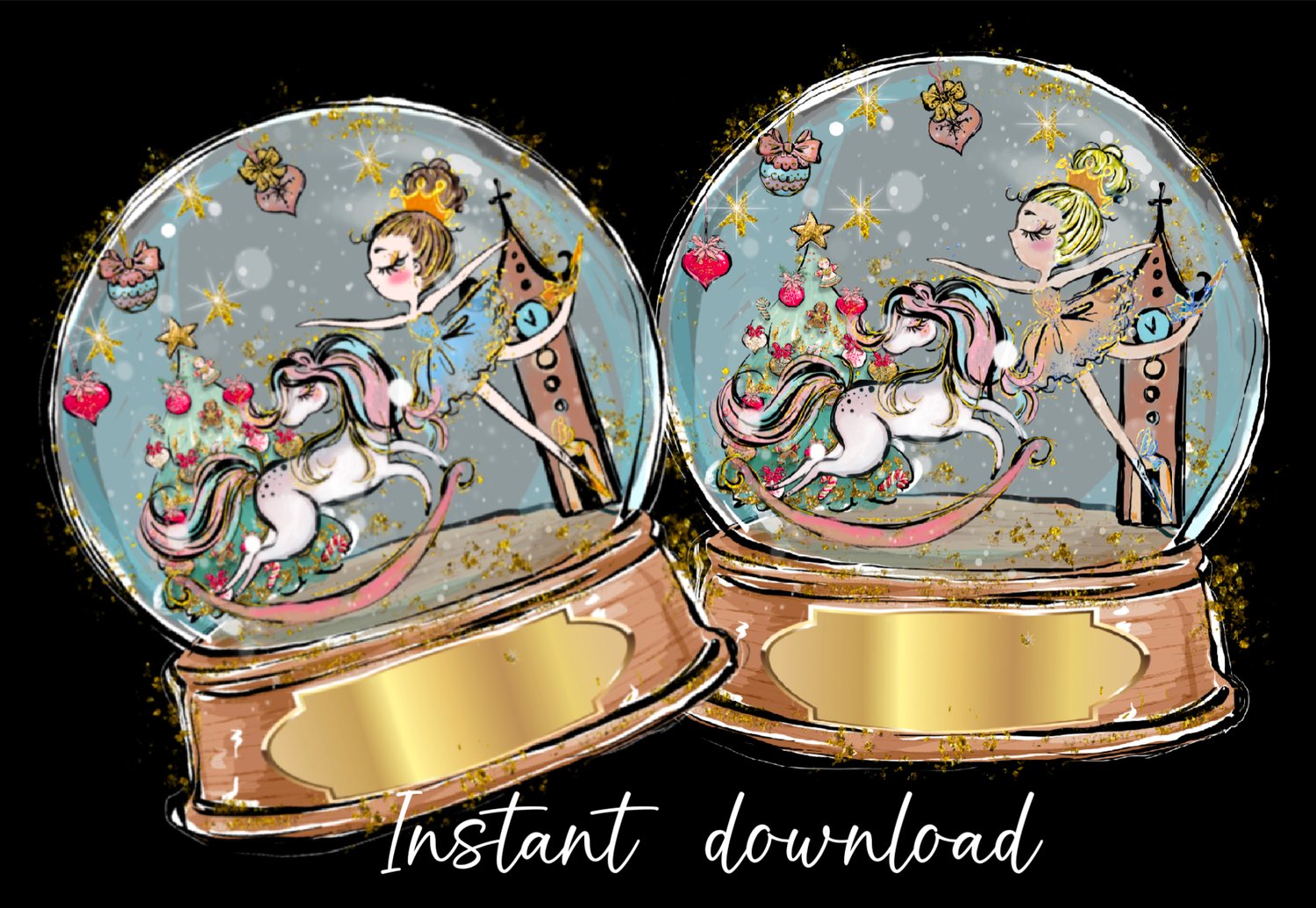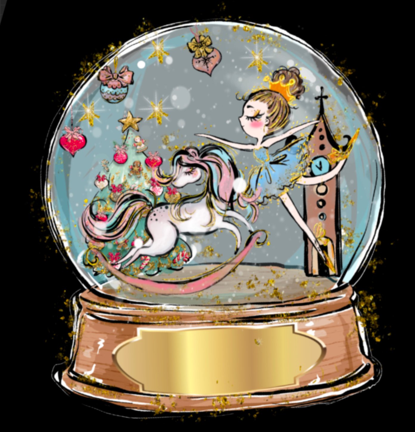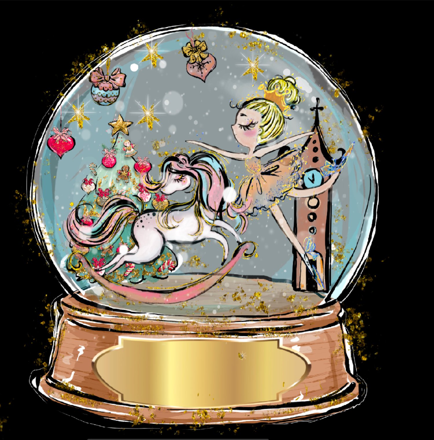 Beautiful snow globe design with blonde and brunette fairy plus nutcracker version for boys. featuring gold elements,
