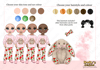 four different skin tones, three eye colours and 7 hair colours)