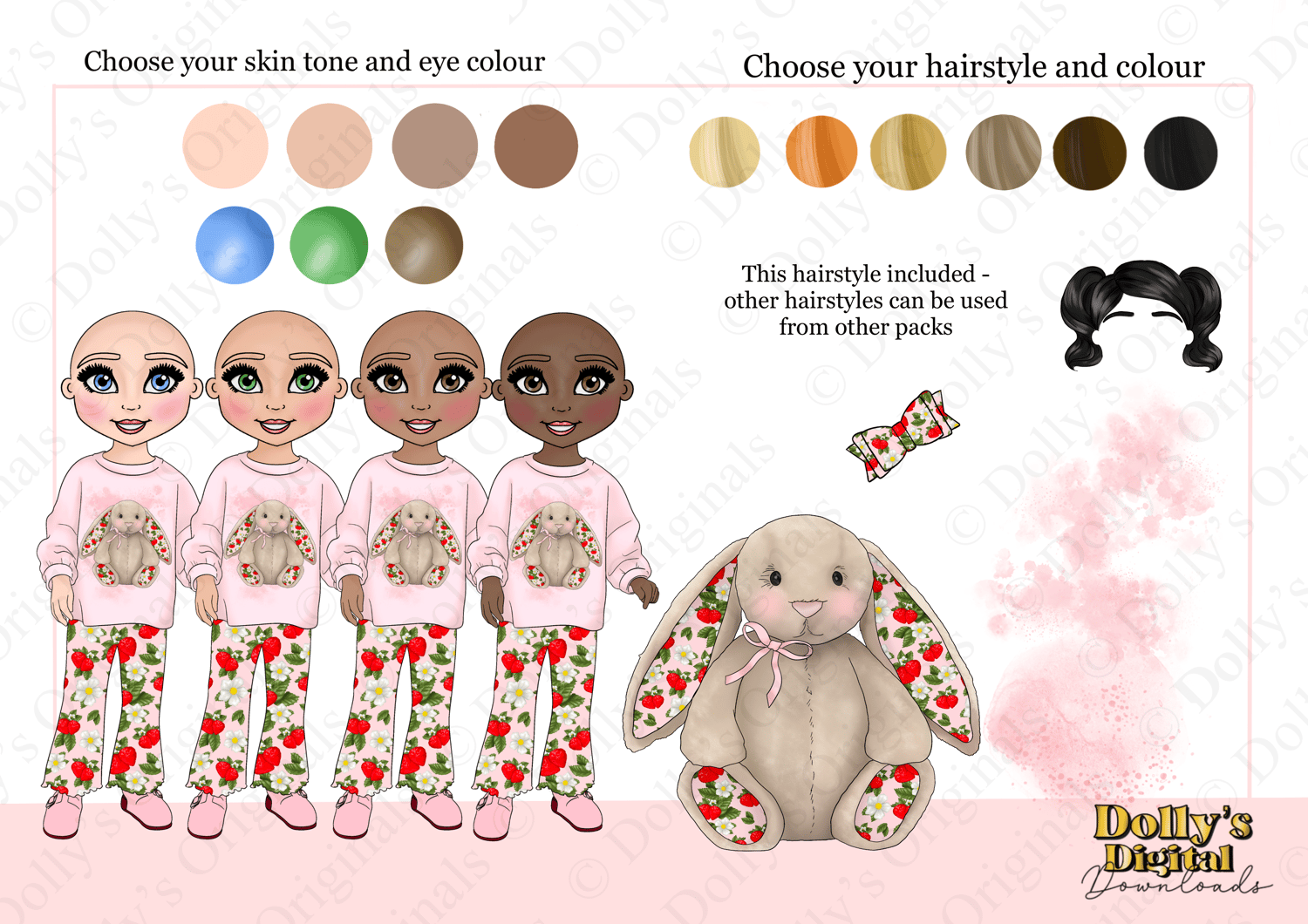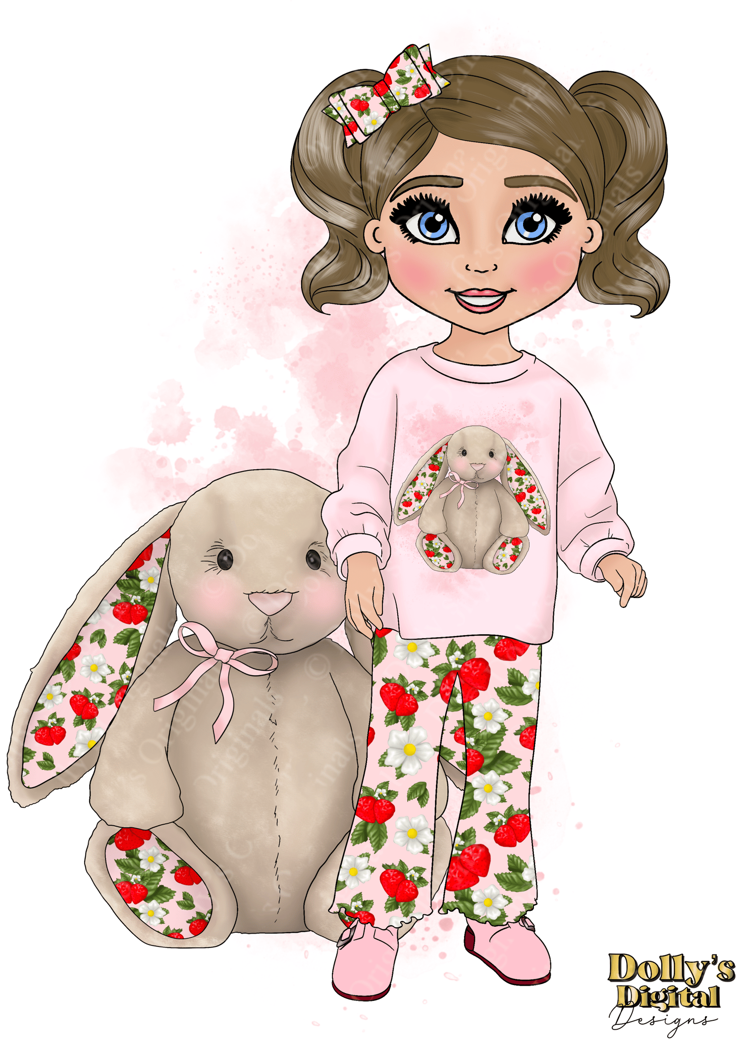Instant digital download of our Strawberry Patch Kawaii Bunny and Toddler Girl Bundle PNG (22 PNG’s)