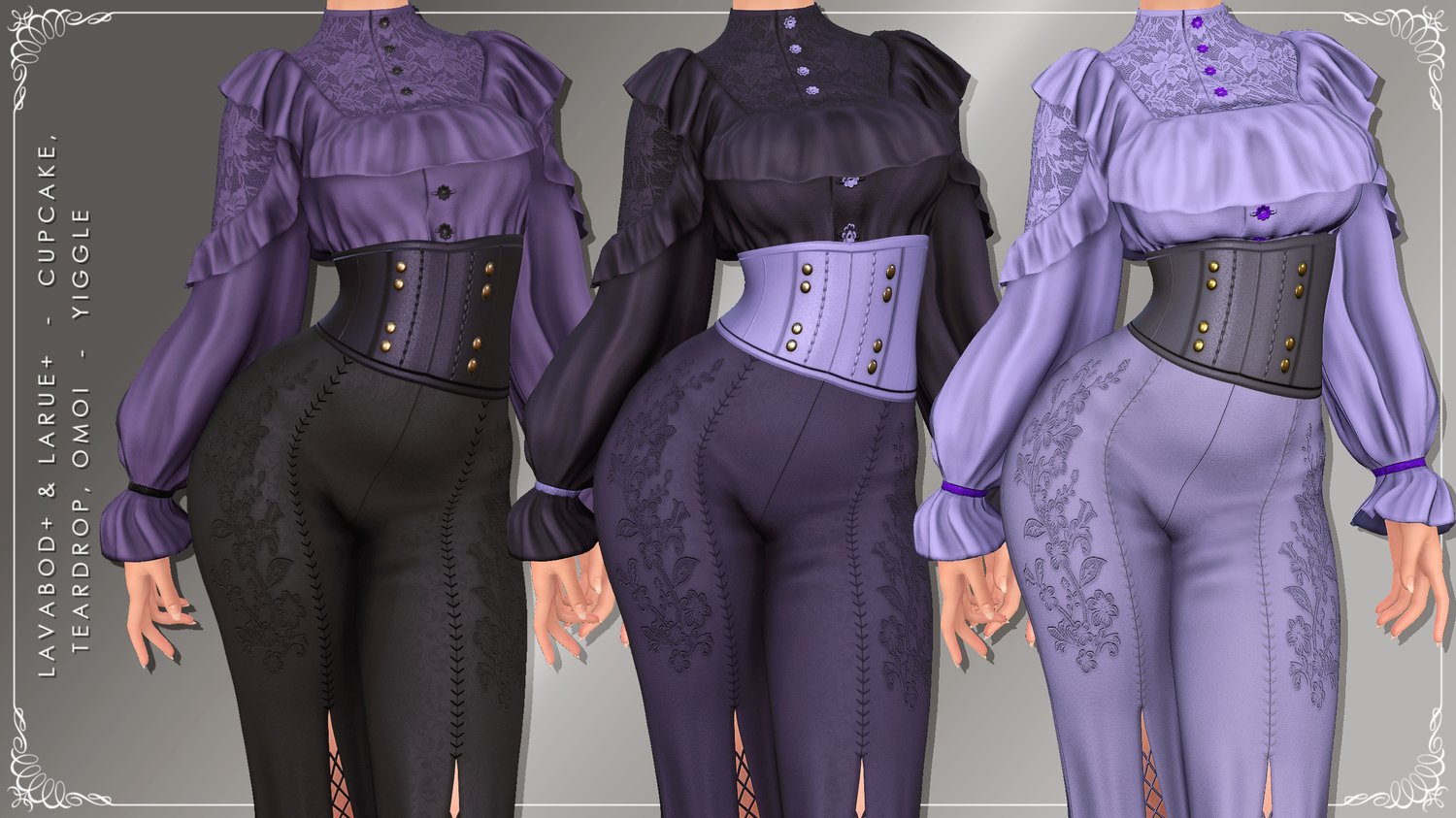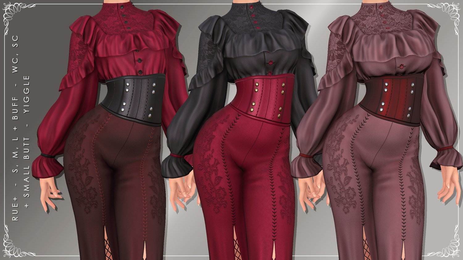 - The parts of the chest and back ruffles around the arms can sometimes kind of clip into themselves depending on the animation / pose.