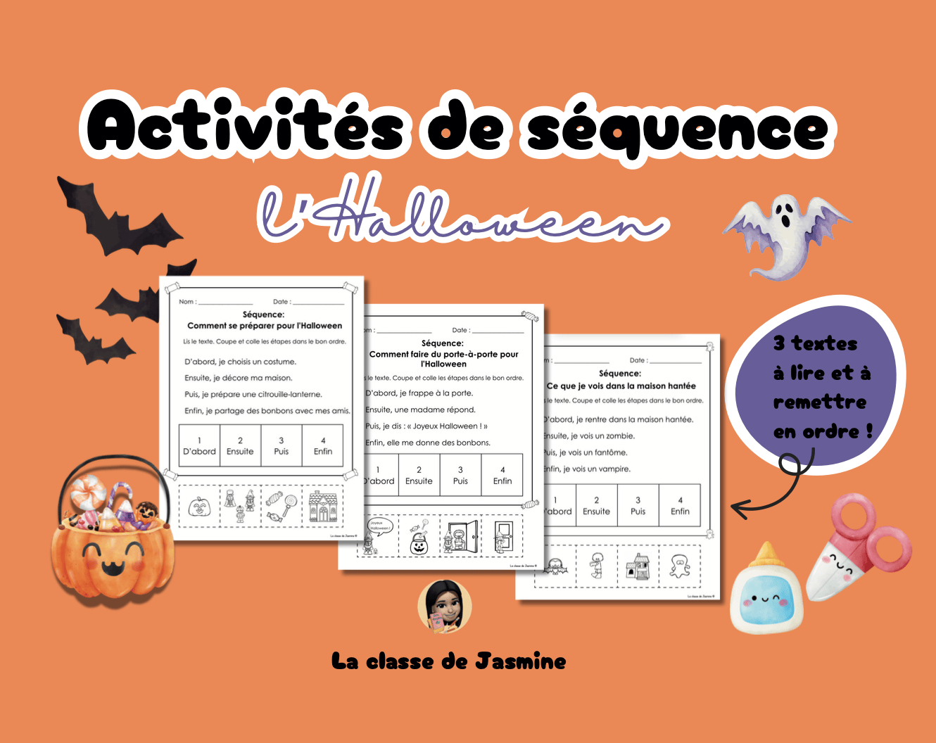 Cette ressource propose 3 courts textes sur l’Halloween, spécialement conçus pour développer la lecture, la compréhension, la logique séquentielle et l’apprentissage des mots de transition.