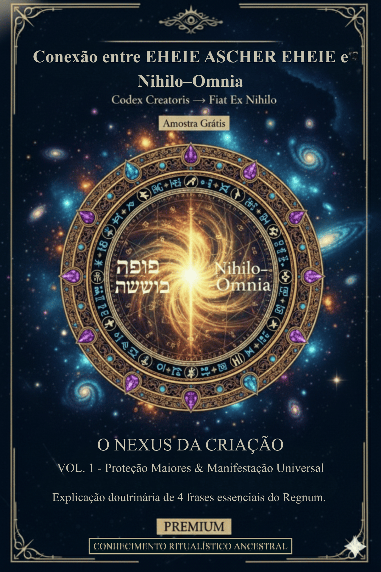 Este documento de doutrina mística explora a fórmula sagrada EHEIE ASCHER EHEIE (Eu Sou o Que Eu Sou/Serei) como o Nexus da Criação e a ponte ativa entre o Nada (Nihilo) e o Tudo (Omnia). O texto aprofunda a metafísica do Eu Sou (Fiat Ego Sum) e sua relação com o Vértice Vortexial (o núcleo girante da Criação), apresentando o Mantra do Giro Infinito para a ativação do canal interno.