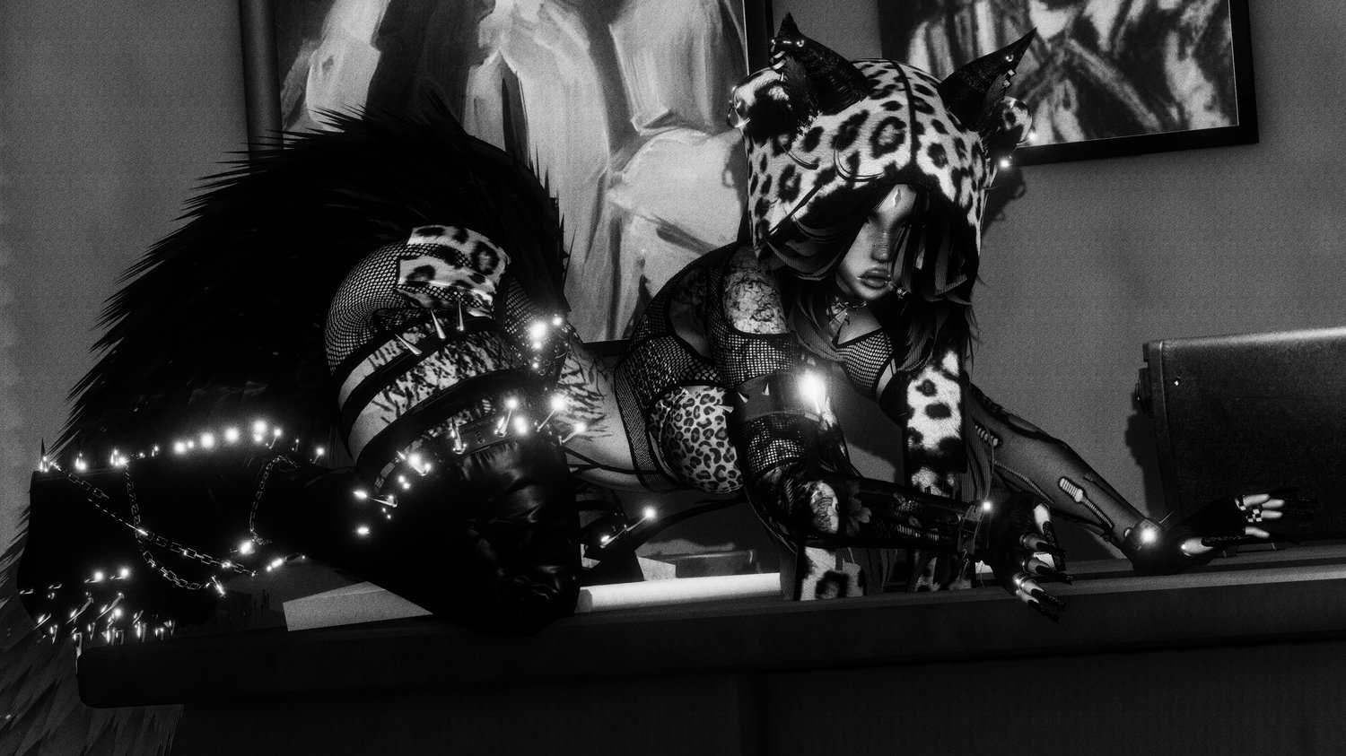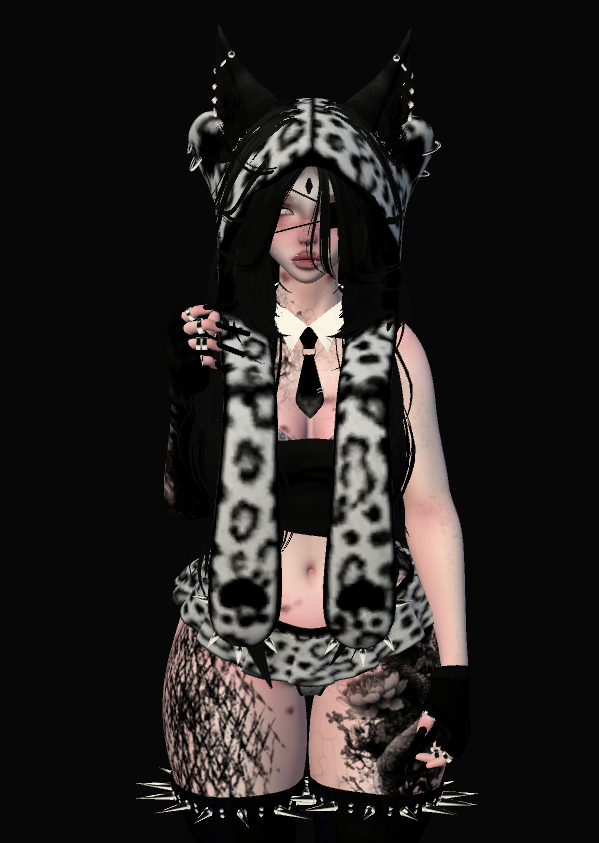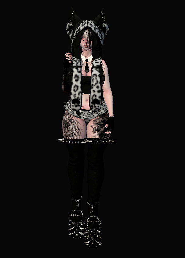 Pants, Shorts, skirt, sneakers, boots, hood, jacket, fishnet sleeves and tight fishnet, gloves, rings, eye patches, ears, tail, leg strap, socks, stickers, bow ties, piercings body and face, nail head, nails on body, cargos, 2 bras and 2 panties, fishnet finger, whips, belt, fishnet chest and bottom, corset, shirt, top, choker, cargos...