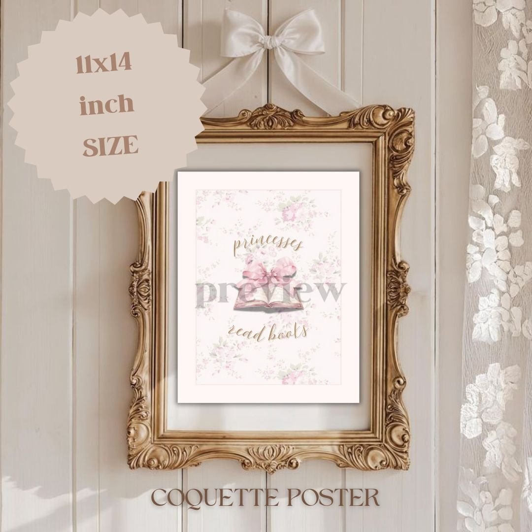 Bring a touch of royal charm and literary elegance to your space with this Princesses Read Books Coquette Poster.