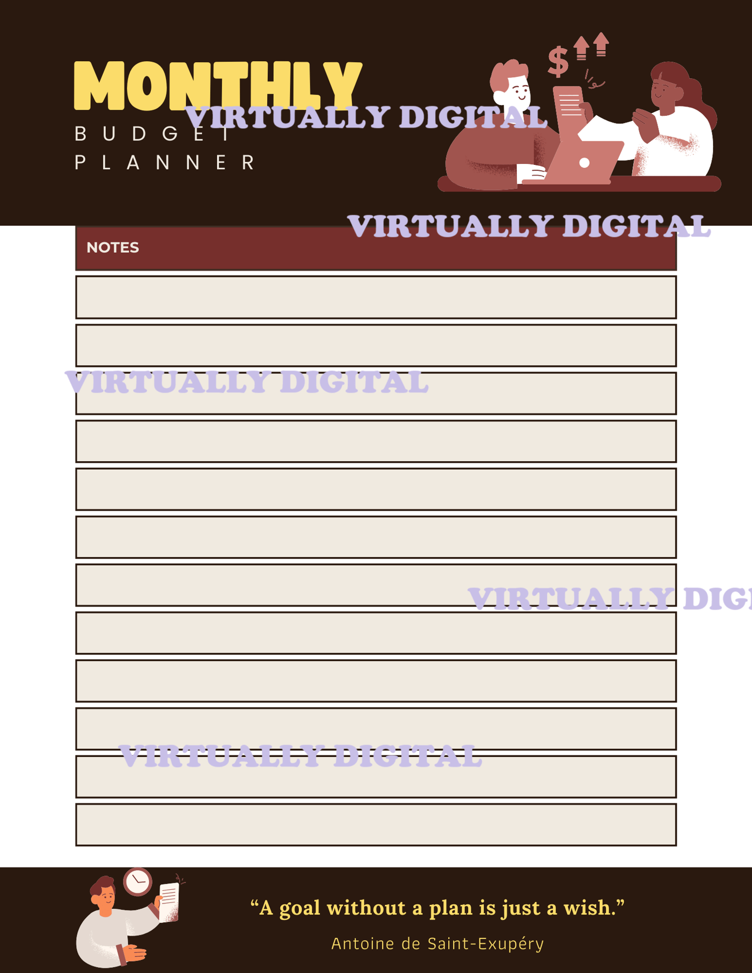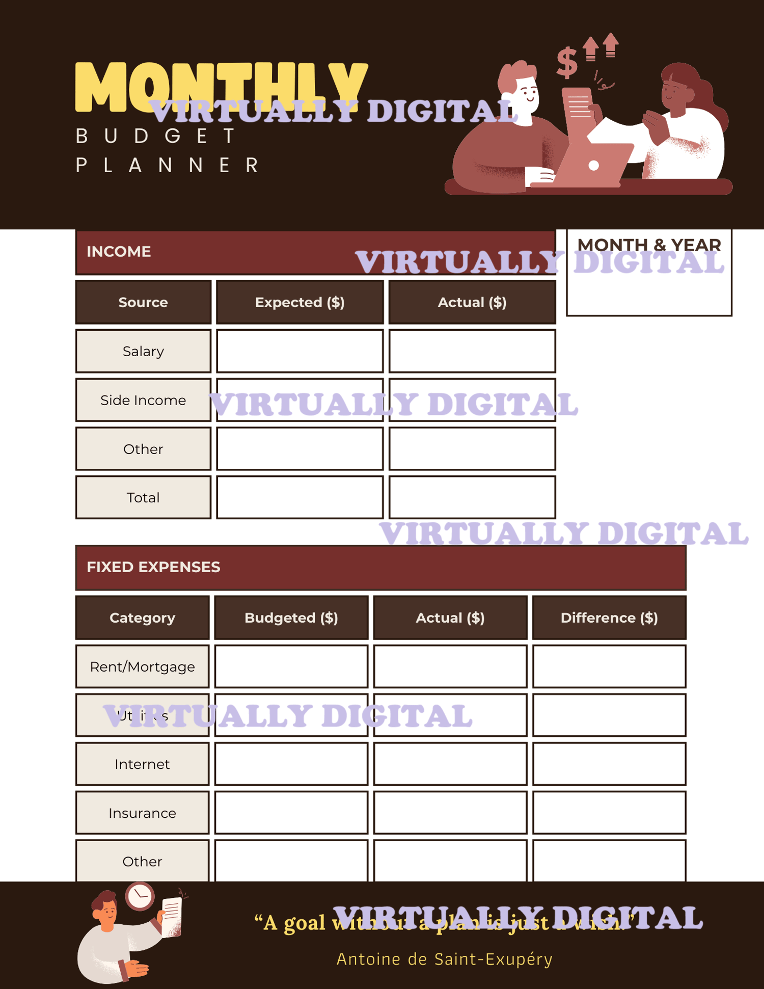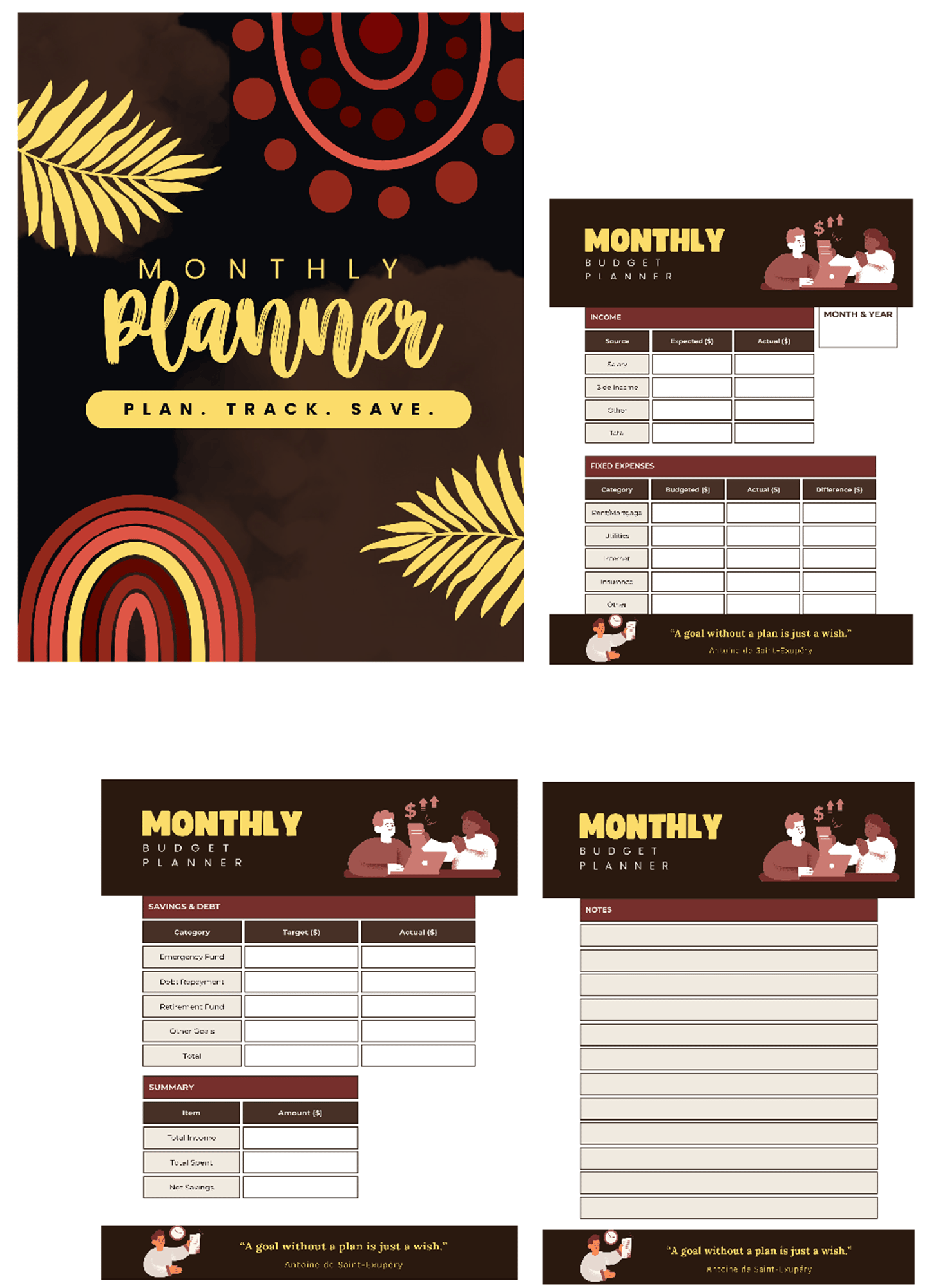 - 12 Monthly Budget Planner Pages (Jan–Dec)