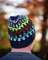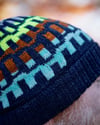 This hat design uses a motif that is adapted from my Hyphenated sweater pattern. With one main color and four contrast colors, Hyphenated Hat is ideal for getting creative and using up scrap and leftover yarn.