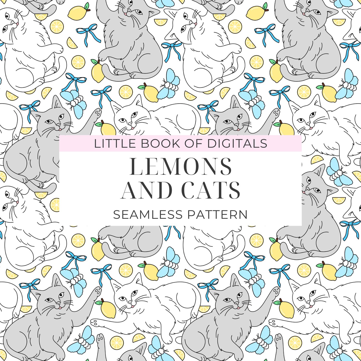 Lemons And Cats Seamless Pattern (Includes 3 Coordinating Designs)