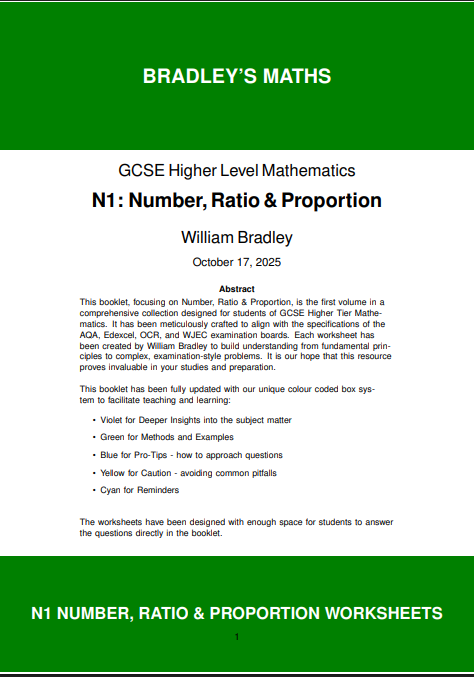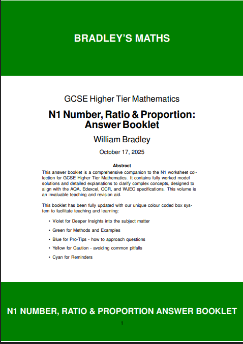 - The Worksheet Booklet: 33 Topics including Indices, Surds, Standard Form, HCF/LCM, and Reverse Percentages.
