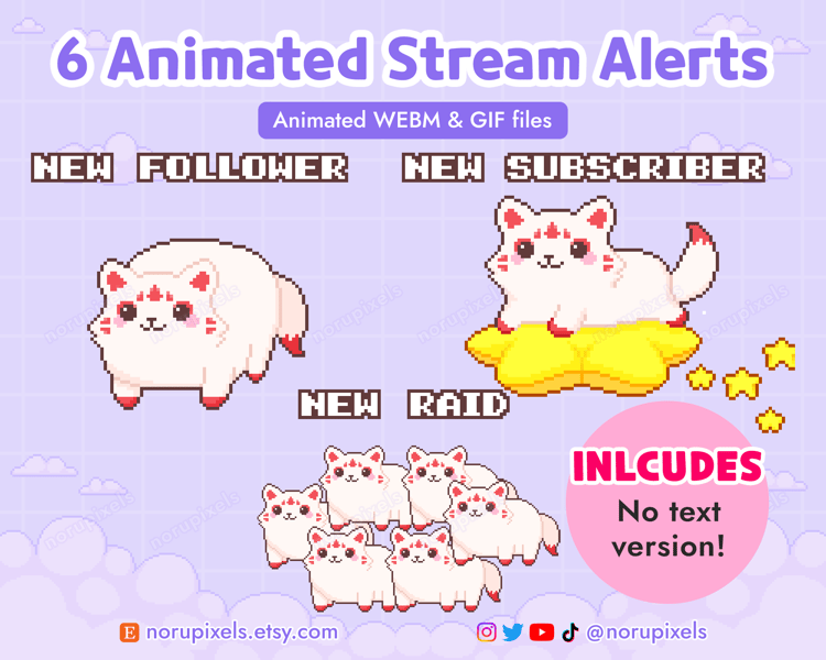 6 animated stream alerts ready to download. After purchase you will receive a .ZIP file. Unzip this to access: