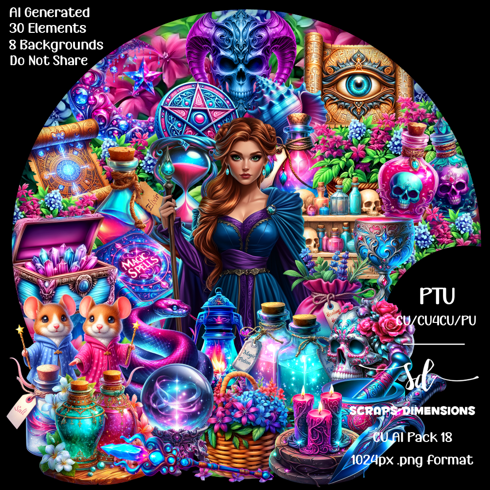 Great addition to your Mystical/Fantasy kits or projects. This pack contains 30 AI generated elements and 8 backgrounds. Elements and backgrounds are 1024px 300dpi. saved in .png format. Enjoy!