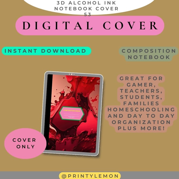 41 Alcohol Ink 3D | Digital Cover Premium | Notebook Cover | GoodNotes | Composition Notebook | Printable