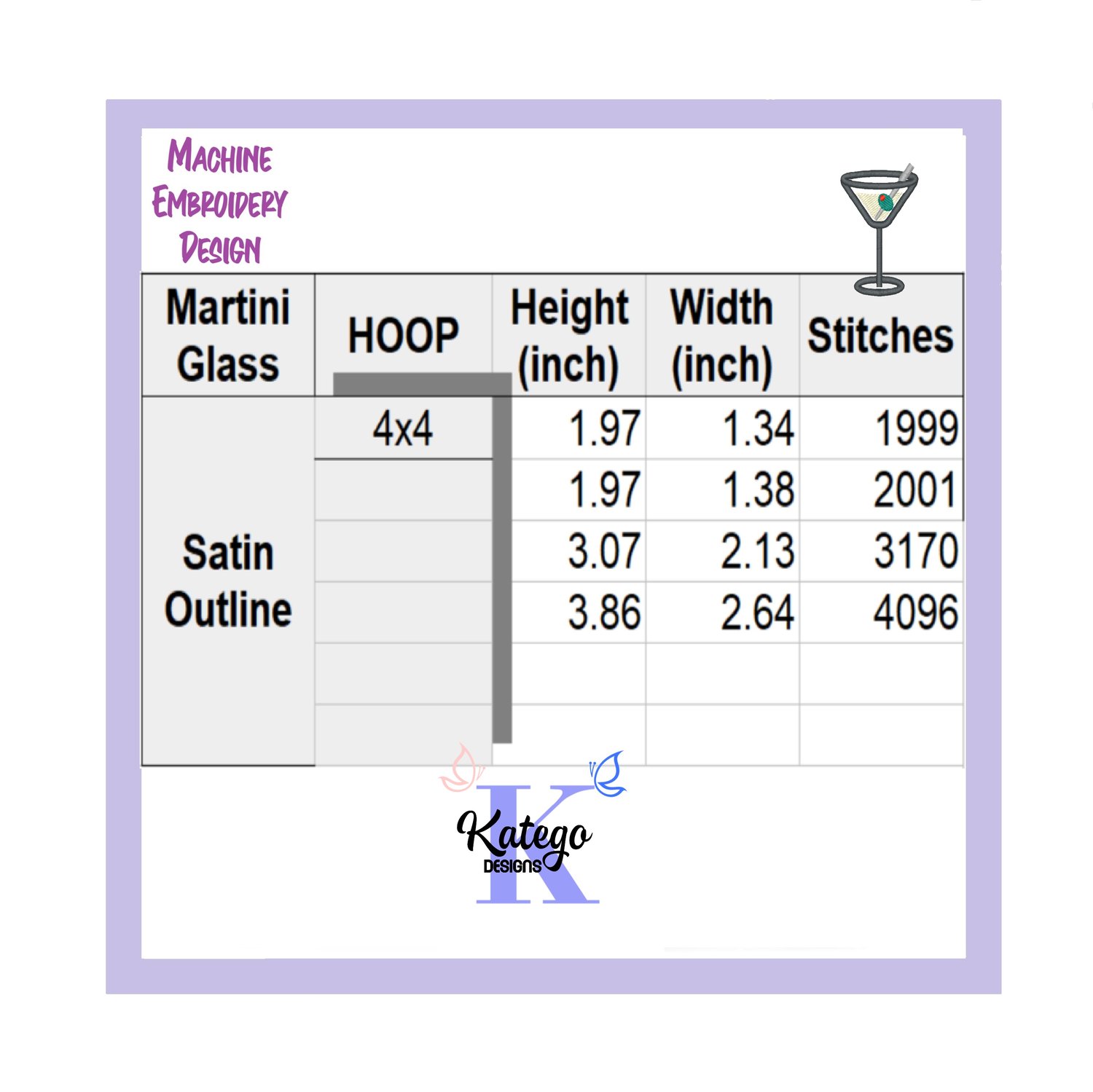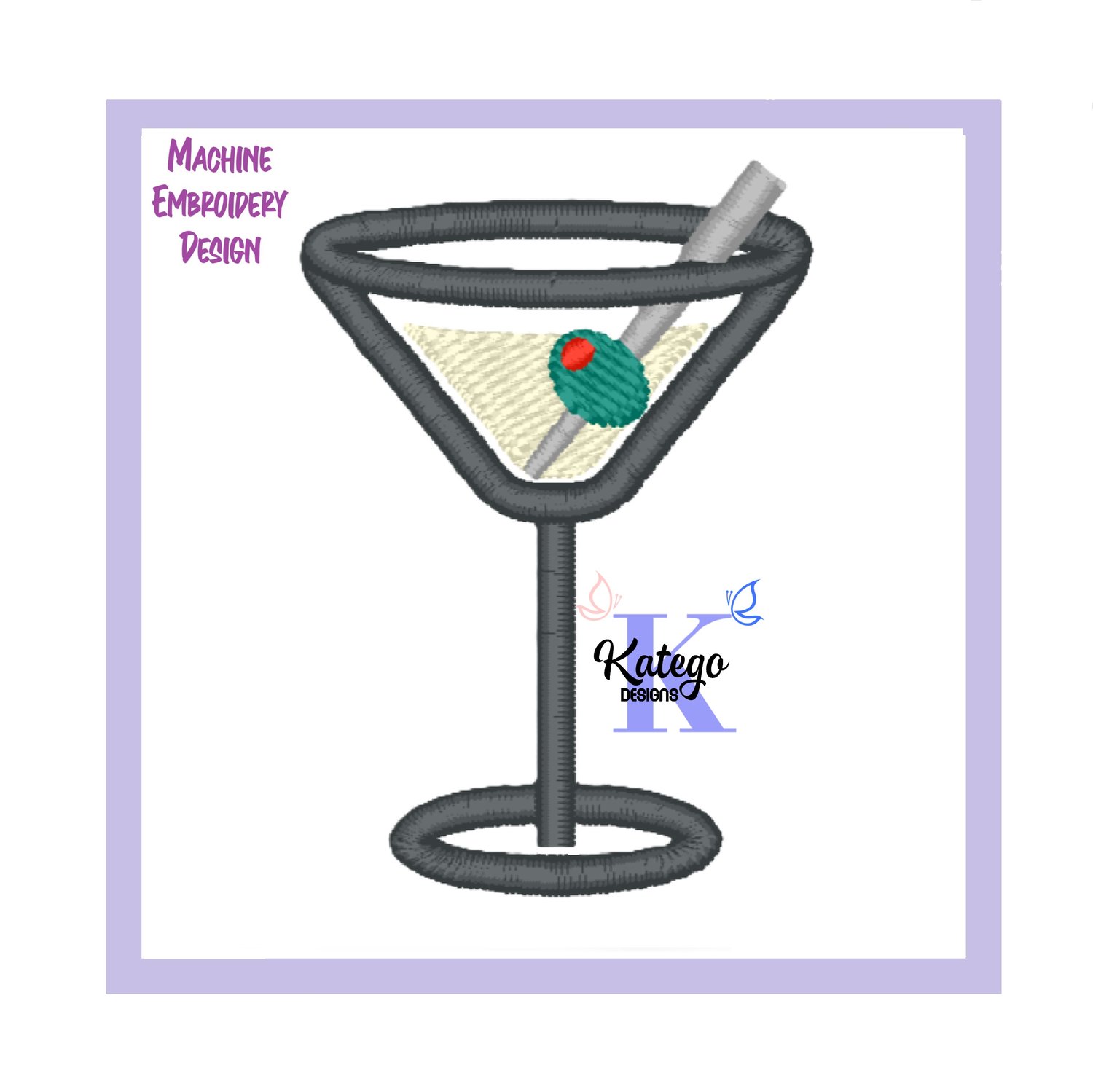 Martini Glass Design - Machine Embroidery Designs - Instant Download - 3 sizes - Drinks Embroidery Design Pattern