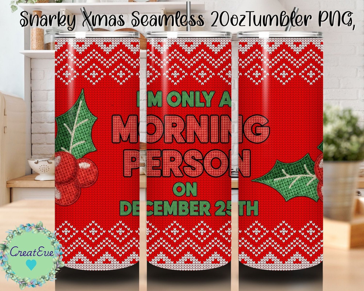 Snarky Stitched Xmas 20pz Seamless Skinny Tumbler PNG, 9.35" x 8.2", 300dpi