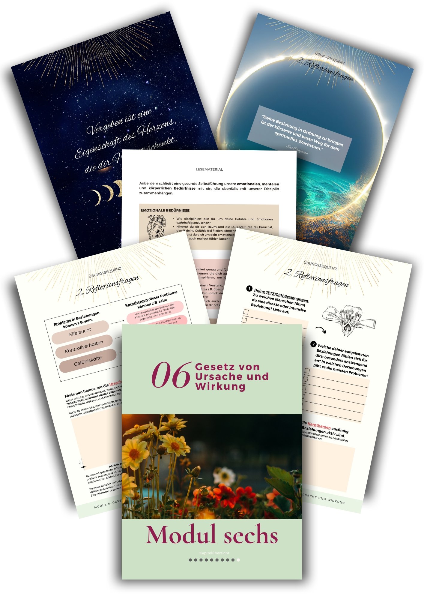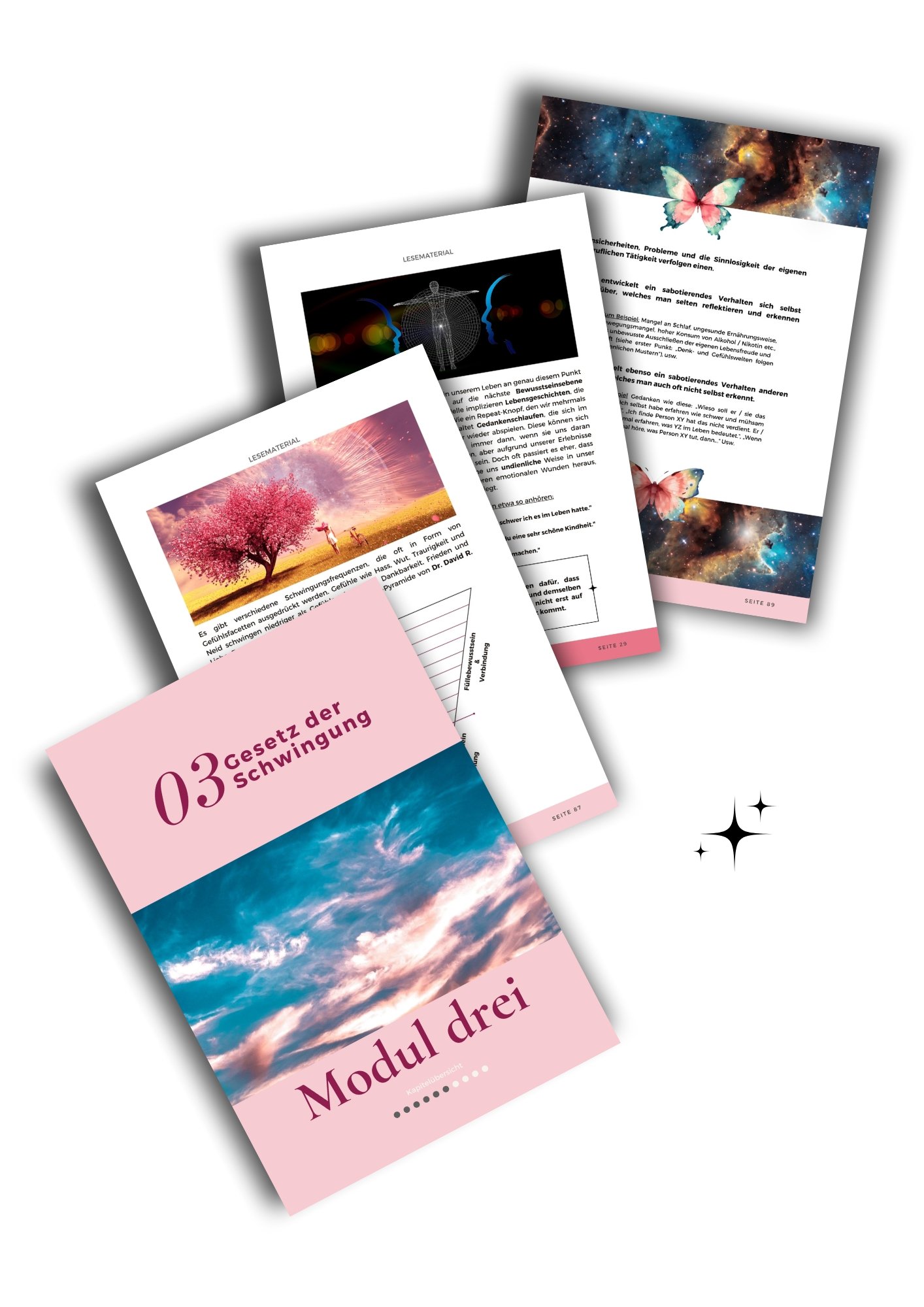 Es besitzt 7 Module. Jedes Modul enthält folgende Übungen: 1) Ankreuzfragen 2) Reflexionsfragen 3) Gefühlsfacetten 4) Emotional Freedom Technique 5) Transformierende Fragen 6) Energietext und 7) Notizen / Erkenntnisse / Ideen